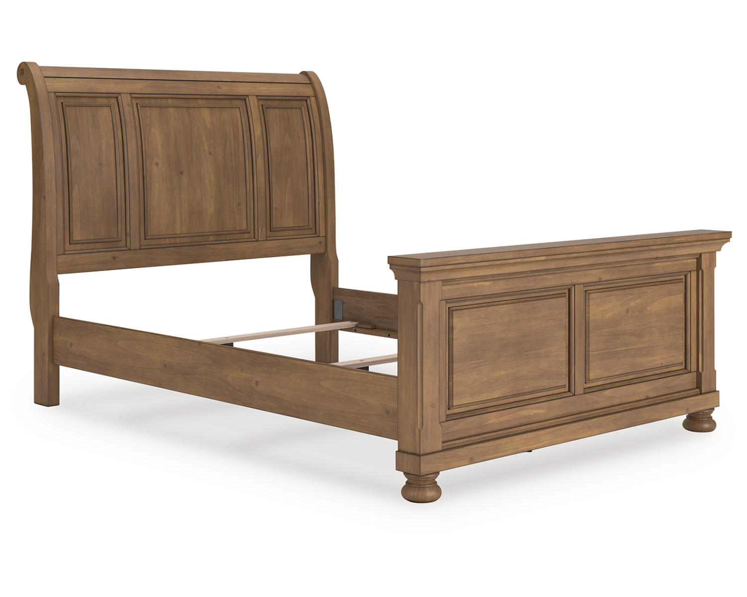 Discover the Feddinger Queen Sleigh Bed, a timeless centerpiece for any traditional or transitional bedroom. This queen-sized sleigh bed is designed to fit standard queen mattresses and brings a refined, classic silhouette to your space. With a warm Medium Brown finish, it pairs effortlessly with a range of decors.