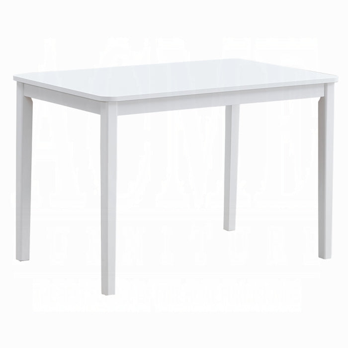 Fidelity dining set exudes modern charm with its sleek design and two-tone chairs. This dining set includes a stylish table and four comfortable chairs, perfect for family meals and gatherings. The chairs feature contrasting tones that add a touch of elegance and visual interest to your dining space.