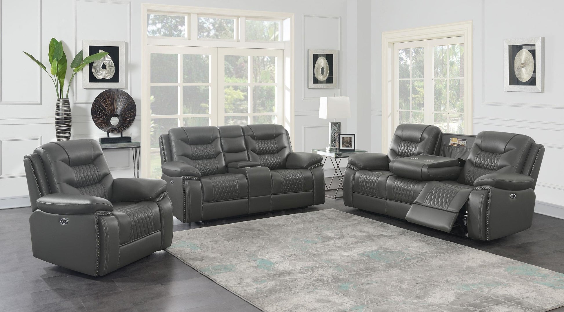 Flamenco 3-piece Upholstered Power Sofa Set – Charcoal