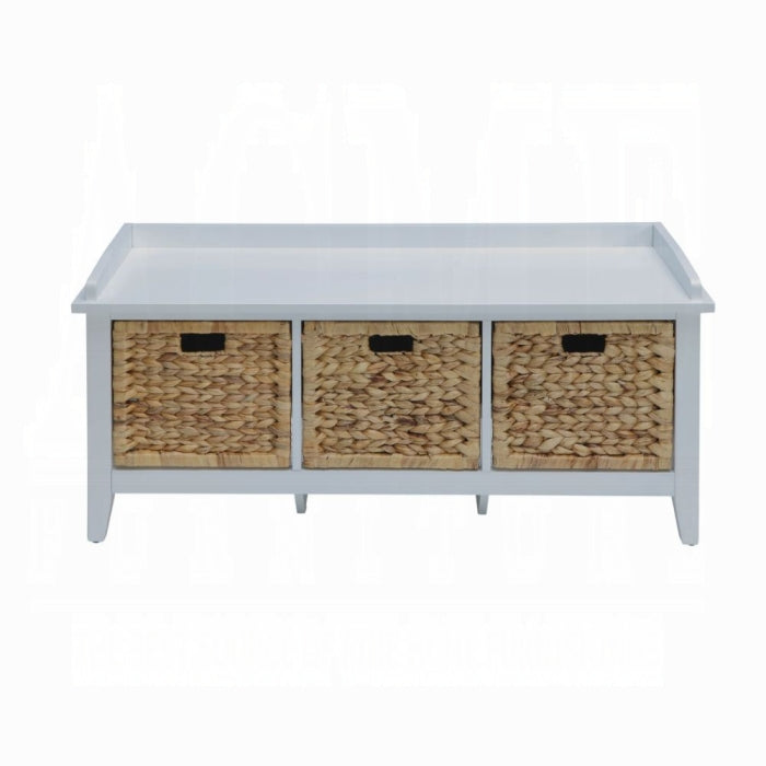 Meet the Flavius Bench W/Storage — a compact, versatile storage bench that blends form and function. Designed for entryways and small spaces, it provides a welcoming seat with built-in organization. Three spacious rattan basket-style drawers offer concealed storage, while the low-profile silhouette and crisp finish keep the look clean and timeless.
