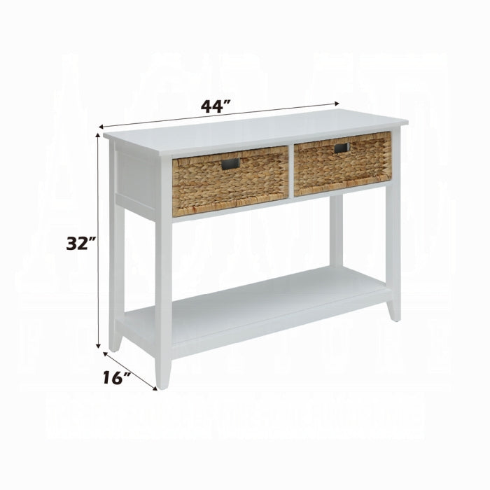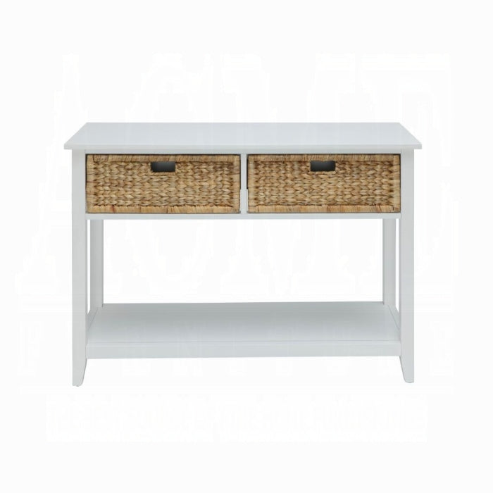 Meet the Flavius console table, a stylish storage solution for any room. Its neutral finish blends with a variety of decors, while two basket-like drawers keep small essentials neatly tucked away. The bottom shelf adds extra storage and display space for items like books, magazines, or decorative accents.