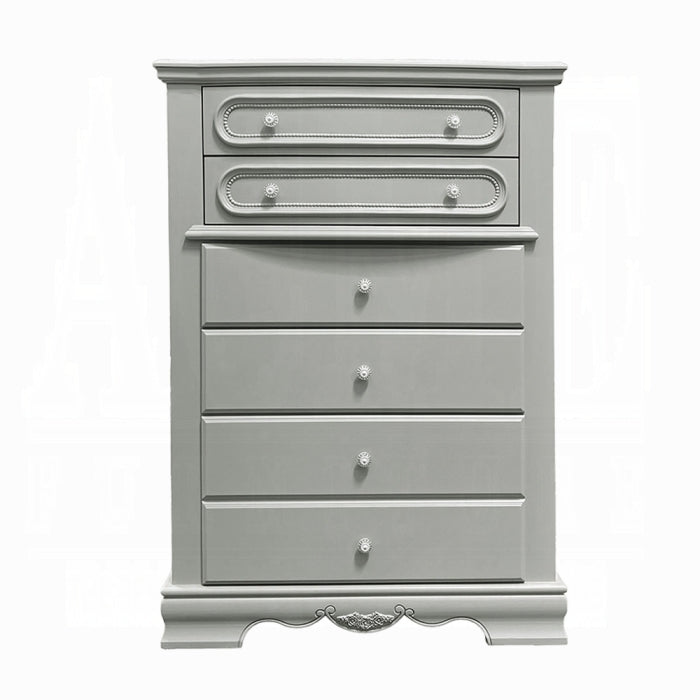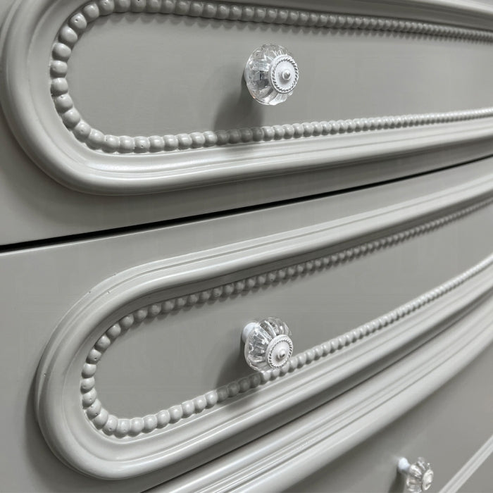Fulfill your little girl's dream of being a princess with the Flora Chest—a royal storage solution designed for girls who love gowns, accessories, and imaginative play. This frilly chest adds a girly touch to any room with a scalloped base and a beautiful floral motif detail. Its six drawers keep dress-up items neatly organized, so every outfit and accessory has a place.
