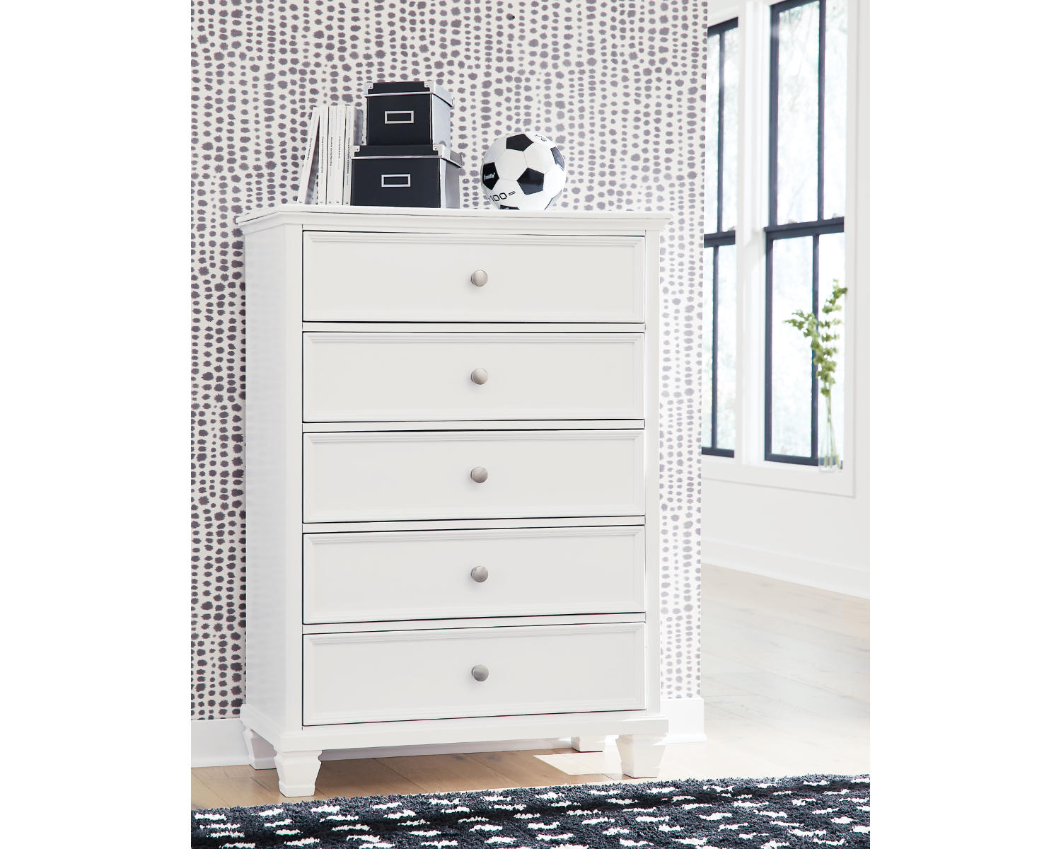 Introducing the Fortman Five Drawer Chest in White—a versatile storage solution that blends clean, modern design with practical organization. Ideal for bedrooms, hallways, or dressing spaces, it keeps clothing and essentials neatly tucked away while remaining easy to access.