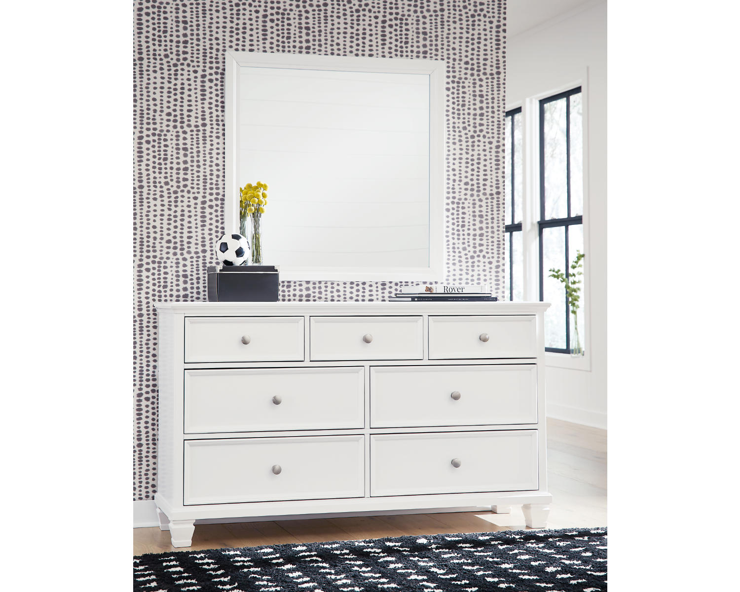 Meet the Fortman Dresser and Mirror in a crisp white finish. This dresser and mirror set is designed for bedrooms that value clean lines, practical storage, and a polished, clutter-free look. It combines functional storage with a mirror for a complete, ready-to-use vanity solution.