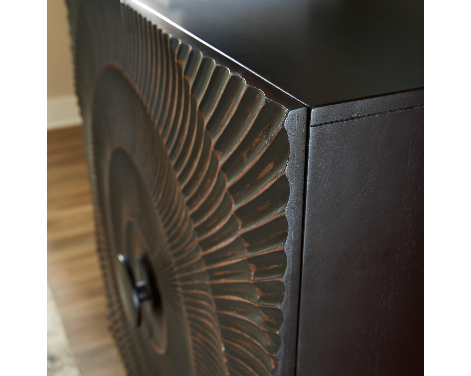 Meet the Fosterman Accent Cabinet—a versatile storage piece that blends timeless style with everyday practicality. Finished in a distressed black, it adds character to living rooms, entryways, or bedrooms while keeping essentials neatly out of sight.