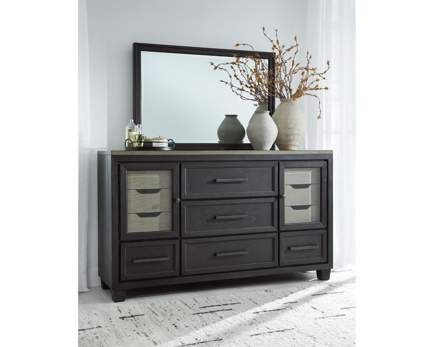 Meet the Foyland Dresser and Mirror—a stylish, space-saving bedroom duo designed for modern spaces. This dresser and mirror set combines practical storage with a bold Black/Brown finish that complements a range of decors. It's built to fit everyday life with a clean, timeless look.