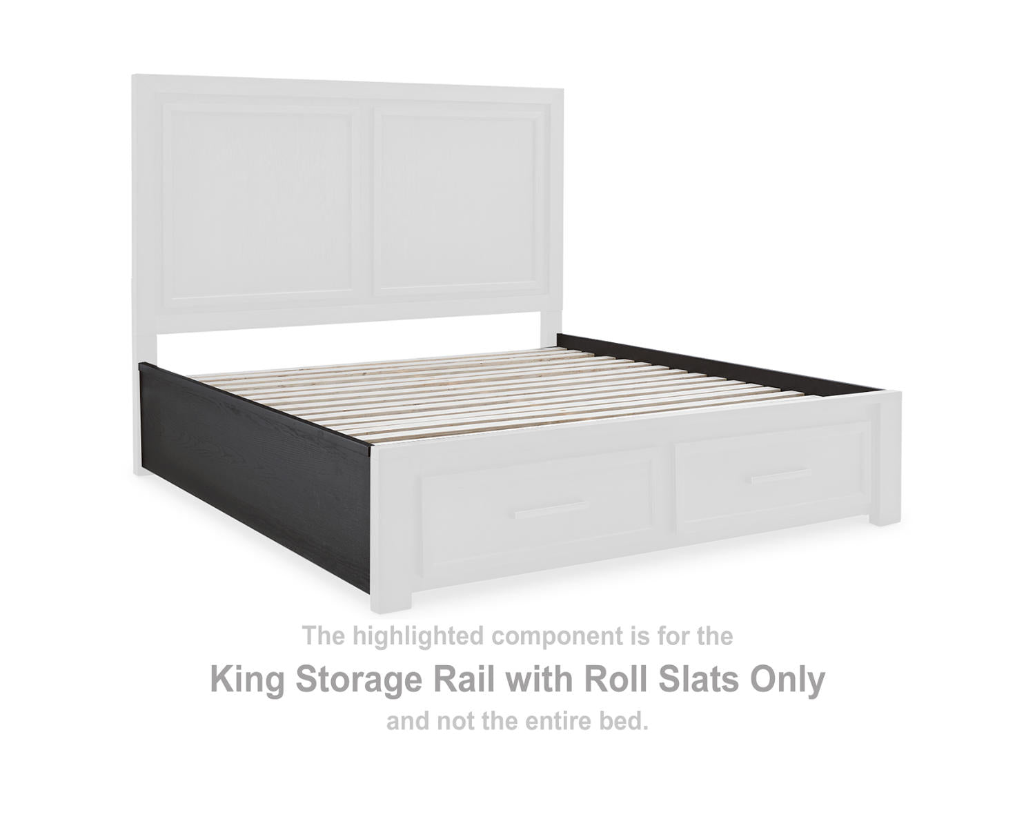 - Size: King panel rails with integrated roll slats for a complete foundation.