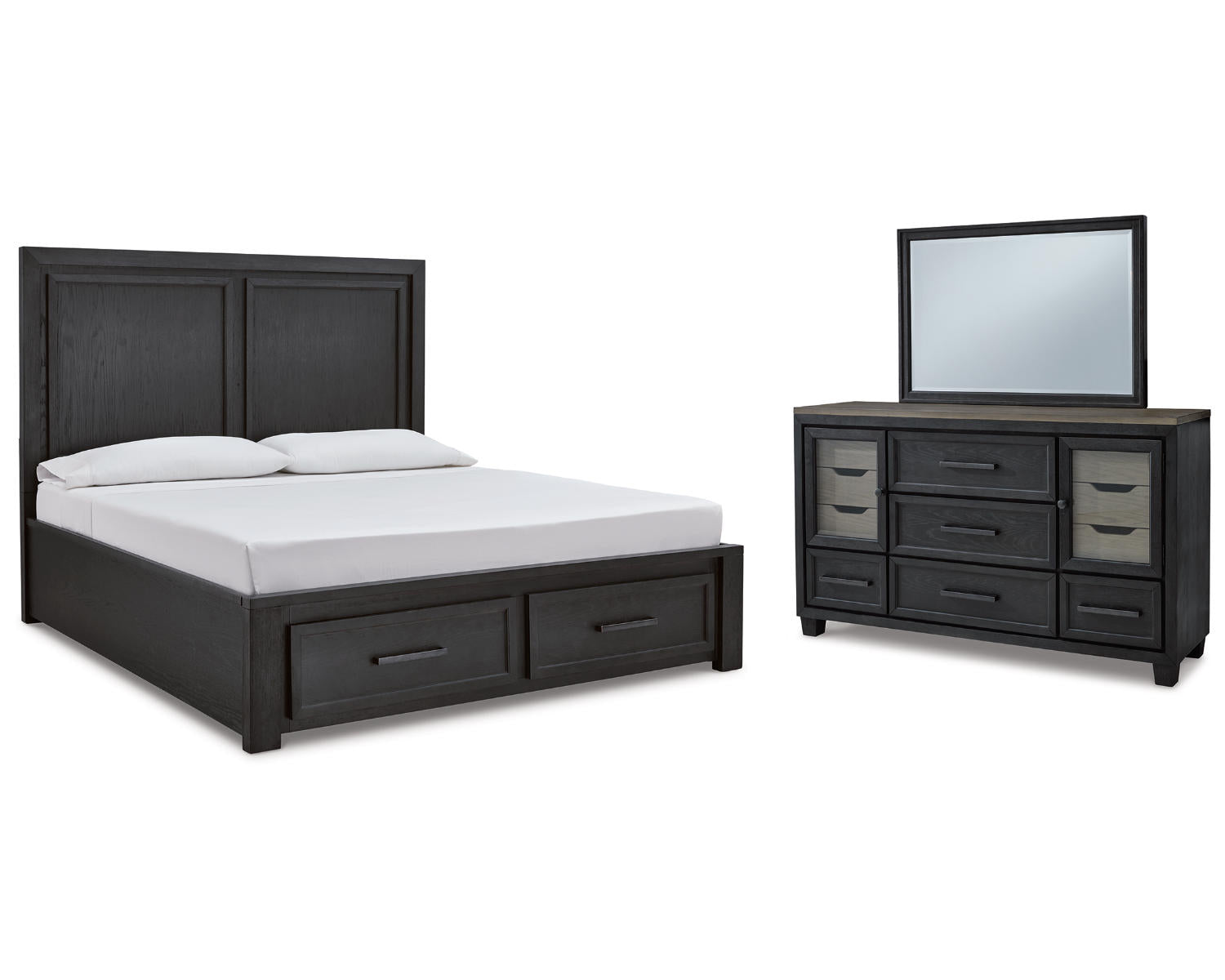 Foyland King Panel Storage Bed, Dresser and Mirror