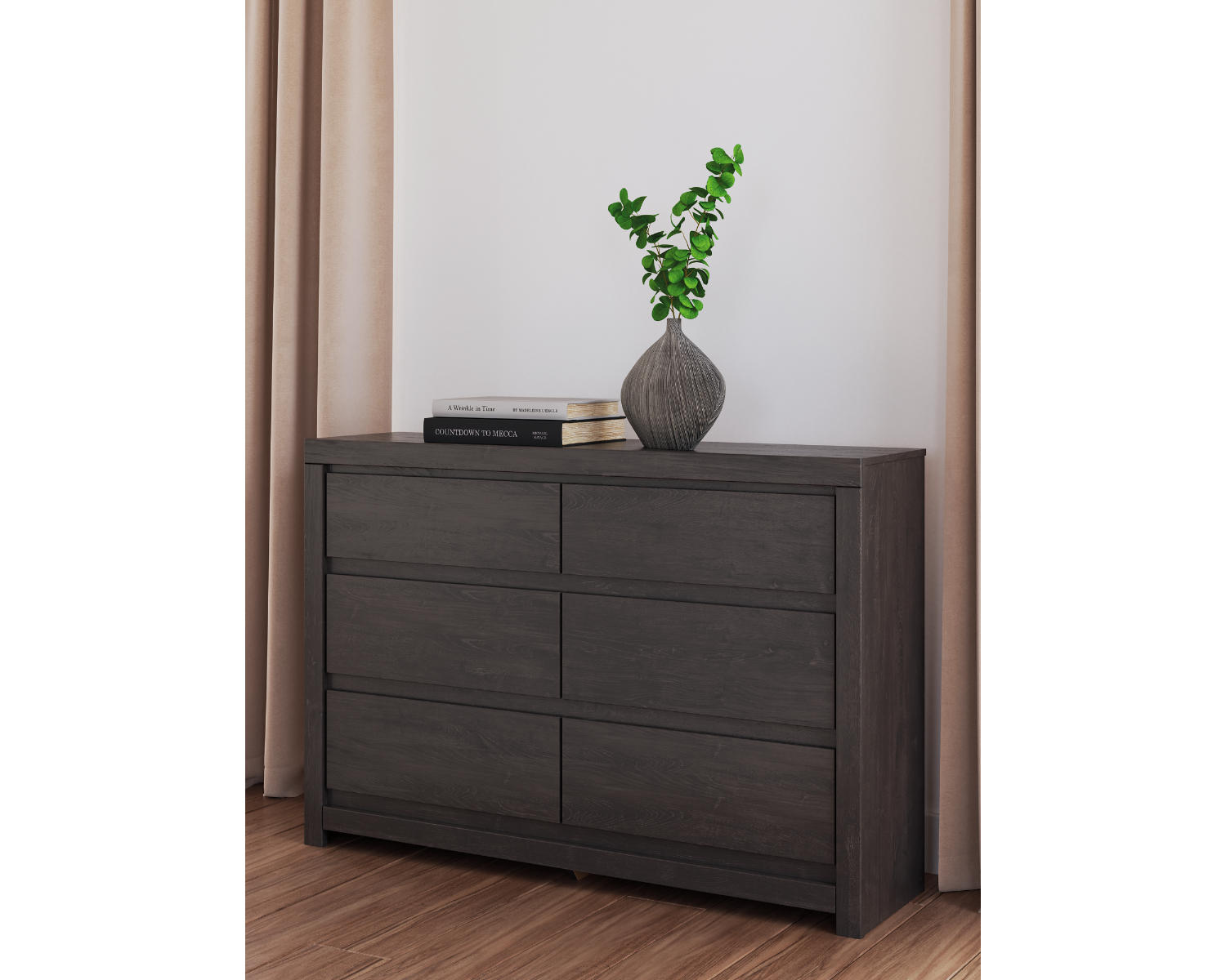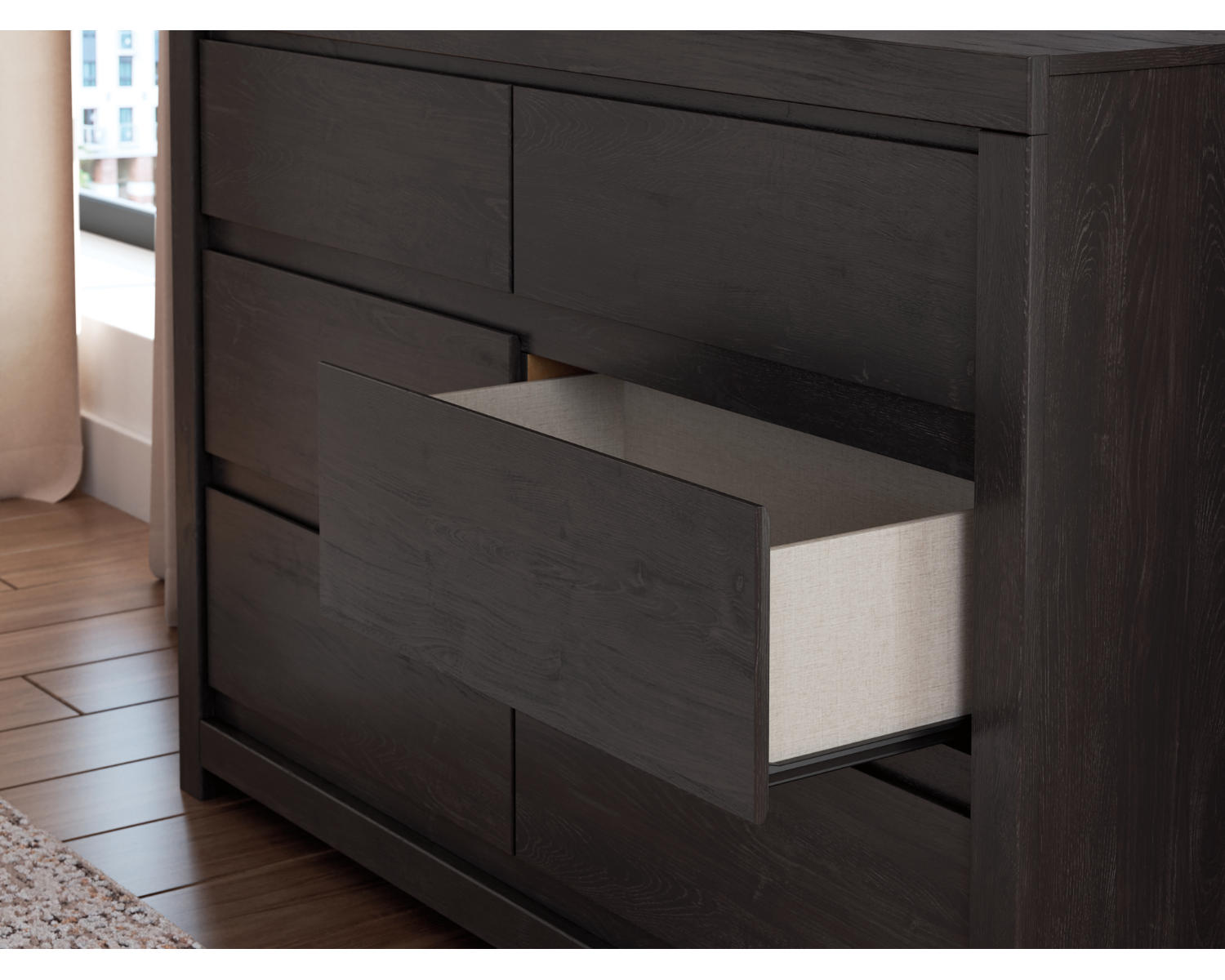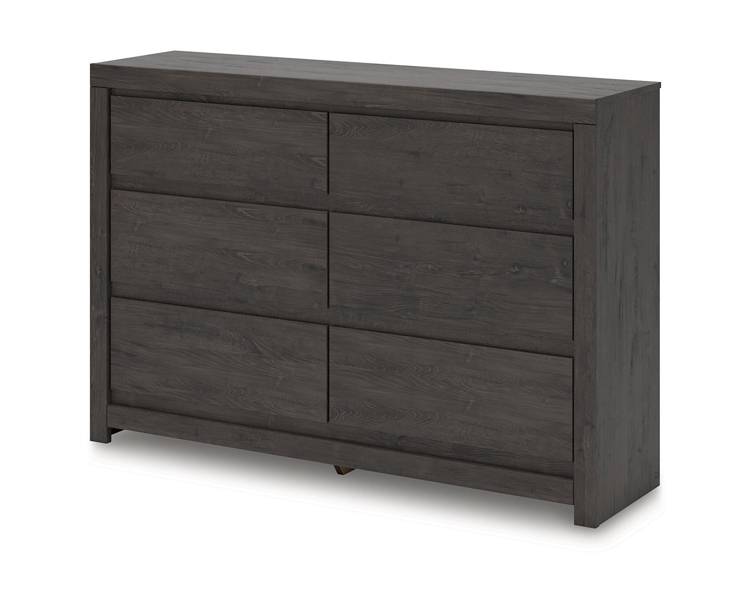 The Fraluna Dresser is a six-drawer storage solution crafted for bedrooms and dressing spaces. Its charcoal finish offers a modern, versatile look that complements a wide range of decors. Designed for everyday use, it helps you keep clothing and personal items neatly organized with a clean, timeless silhouette.