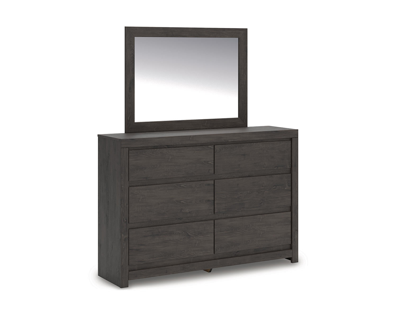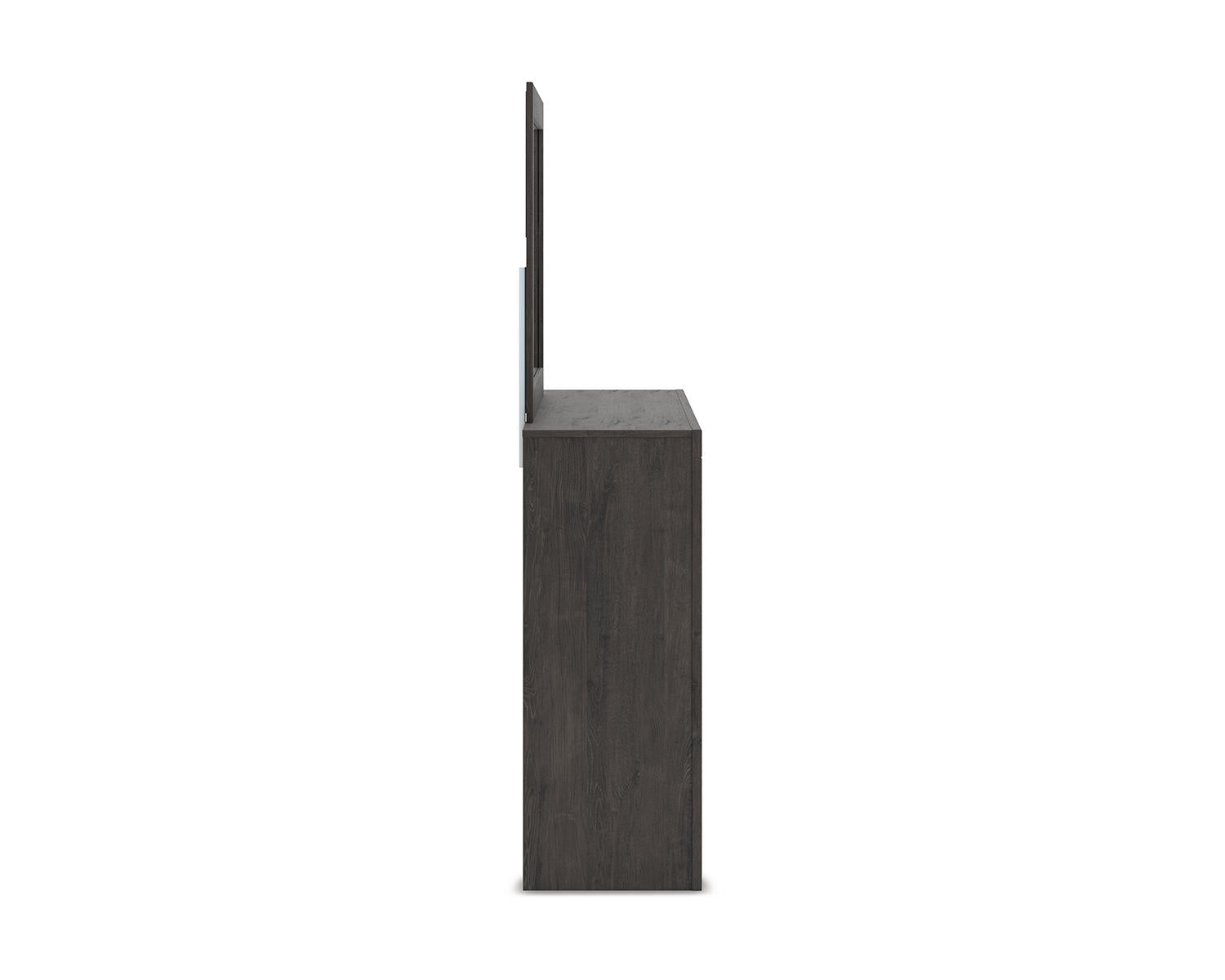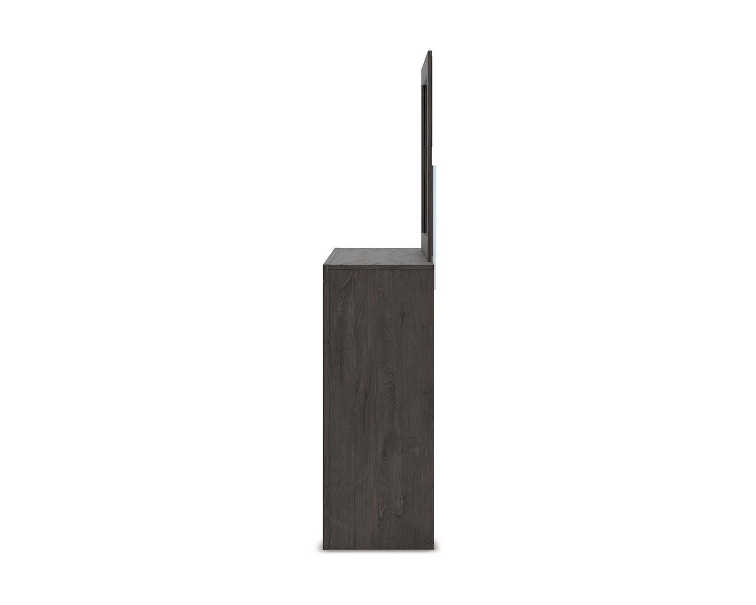 Introducing the Fraluna Dresser and Mirror in charcoal, a versatile bedroom solution designed for modern spaces. This coordinated set combines stylish storage with a practical vanity mirror, making mornings smoother and rooms neater. With its sleek charcoal finish, it blends easily with a range of decors while adding a touch of contemporary charm.