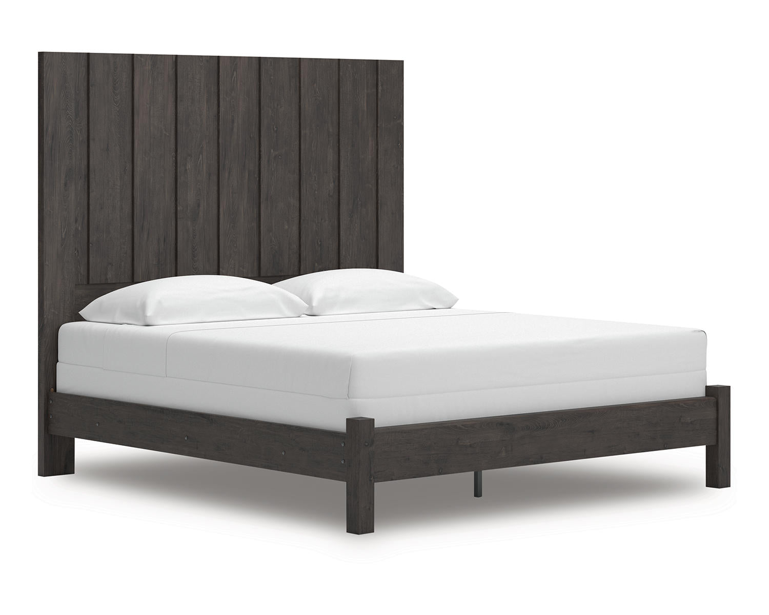 The Fraluna King Panel Bed in Charcoal offers a contemporary, space-conscious centerpiece for modern bedrooms. Designed for those who want clean lines, dependable construction, and a versatile charcoal finish. This king-size bed blends style with practical daily use.