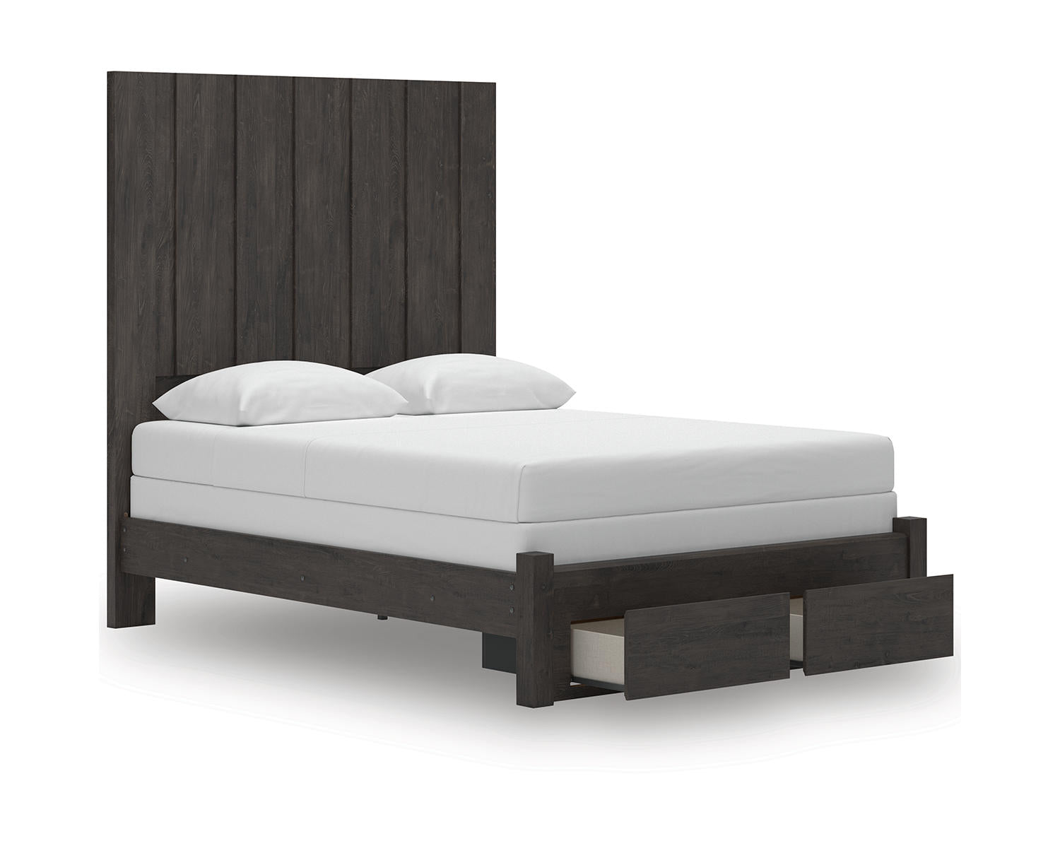 Meet the Fraluna Queen Panel Storage Bed in Charcoal—where clean lines meet practical storage for modern bedrooms. Designed for those who want a calm, contemporary centerpiece with built-in organization. This queen-sized panel bed keeps clutter out of sight while delivering a sleek, durable look.