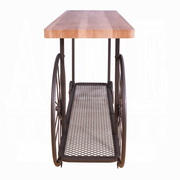 Meet the Francie Sofa Table, a compact piece designed for fans of industrial style. Its butcher block top paired with a metal mesh lower shelf brings a warm, urban vibe to any living space. The cart-inspired frame sits on wheels for easy repositioning, so you can adjust your layout with ease.