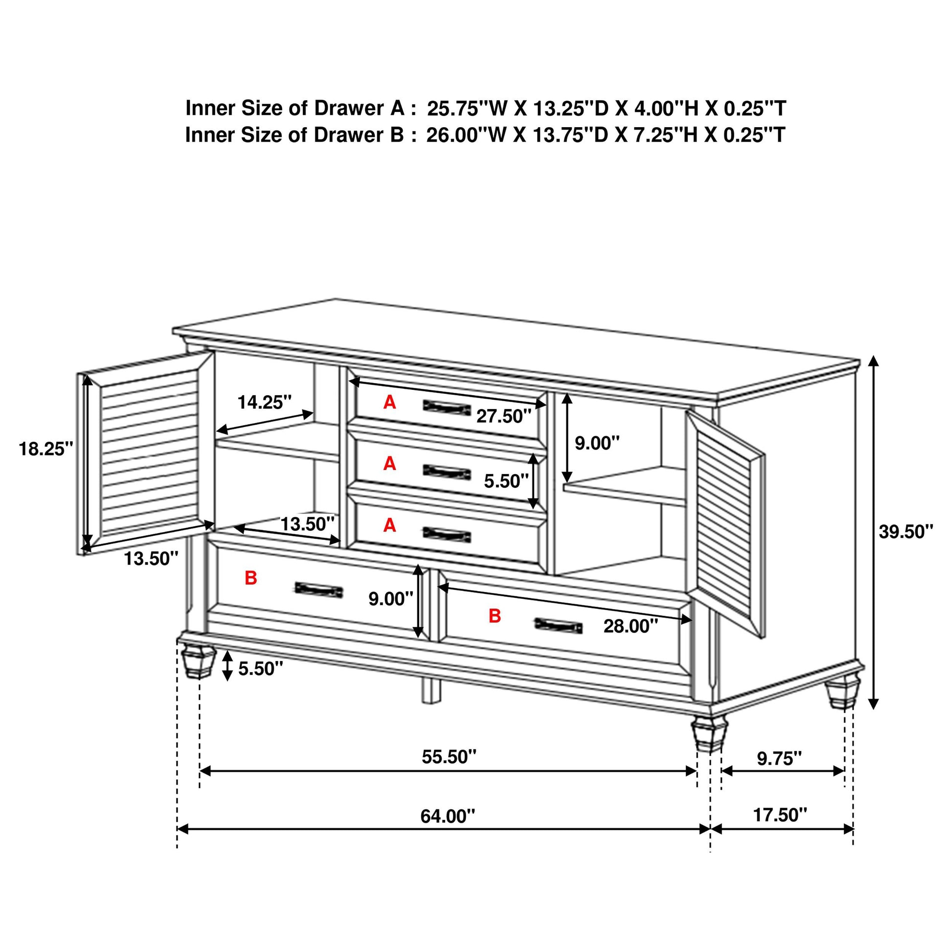 - Five spacious drawers offer organized storage for clothing, linens, and personal items
