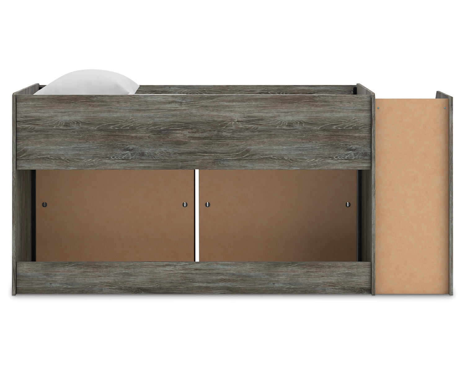Meet the Frandern Twin Loft Bed with Bookcase Storage in Warm Gray — a smart, space-saving solution for compact bedrooms. Designed for kids and families who value organization, this loft bed combines a comfortable sleeping space with accessible storage. The warm gray finish adds a contemporary touch that easily complements modern decor.