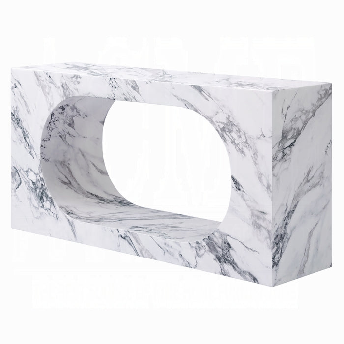 Meet the Fritzy Console Table, a sleek white-finished cabinet that adds a modern focal point to any space. Designed for living rooms, entryways, and home offices, it blends contemporary style with practical storage. The bold marble-inspired design and distinctive cutout shapes provide an artistic edge while keeping everyday essentials organized and within reach.