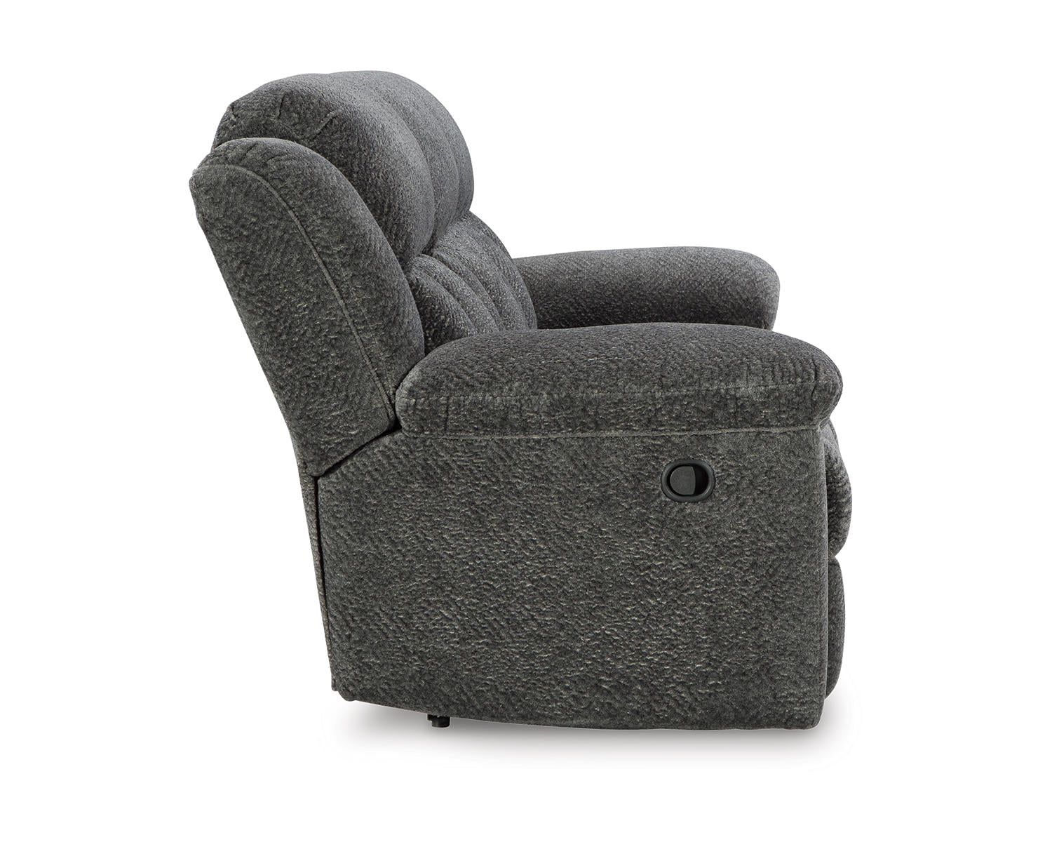 The Frohn Reclining Sofa in Graphite offers versatile, comfortable seating for everyday living. Ideal for living rooms, media spaces, or family rooms, it combines a smooth reclining mechanism with a modern graphite finish for a clean, contemporary look.