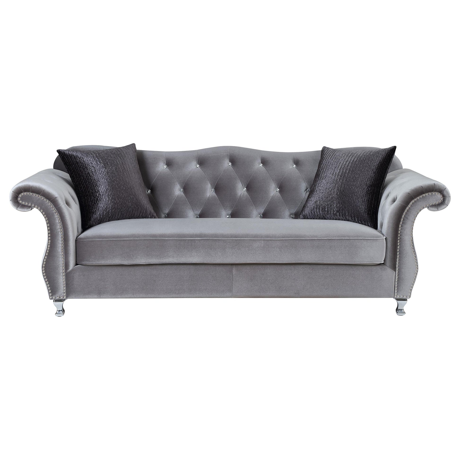 Frostine Upholstered Rolled Arm Tufted Sofa Silver