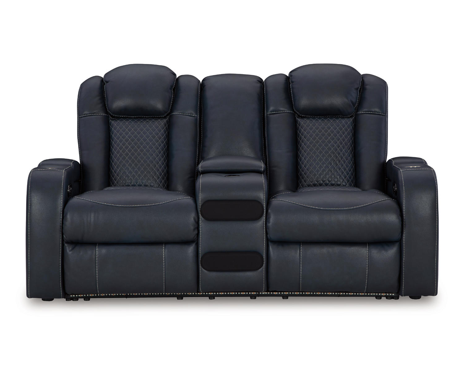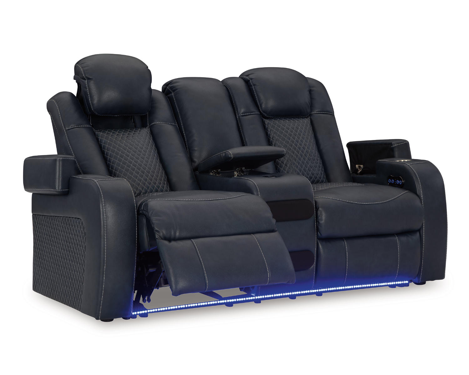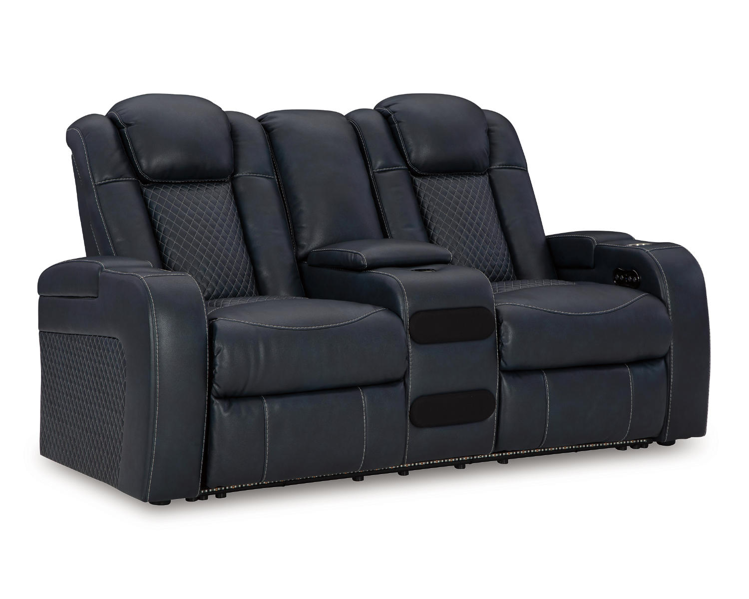 Meet the Fyne-Dyme Power Reclining Loveseat with Console, a versatile seating solution built for everyday comfort. Ideal for living rooms, media spaces, or home theaters, it pairs effortless relaxation with practical features. Finished in Sapphire, it adds a rich accent to a variety of décor styles.