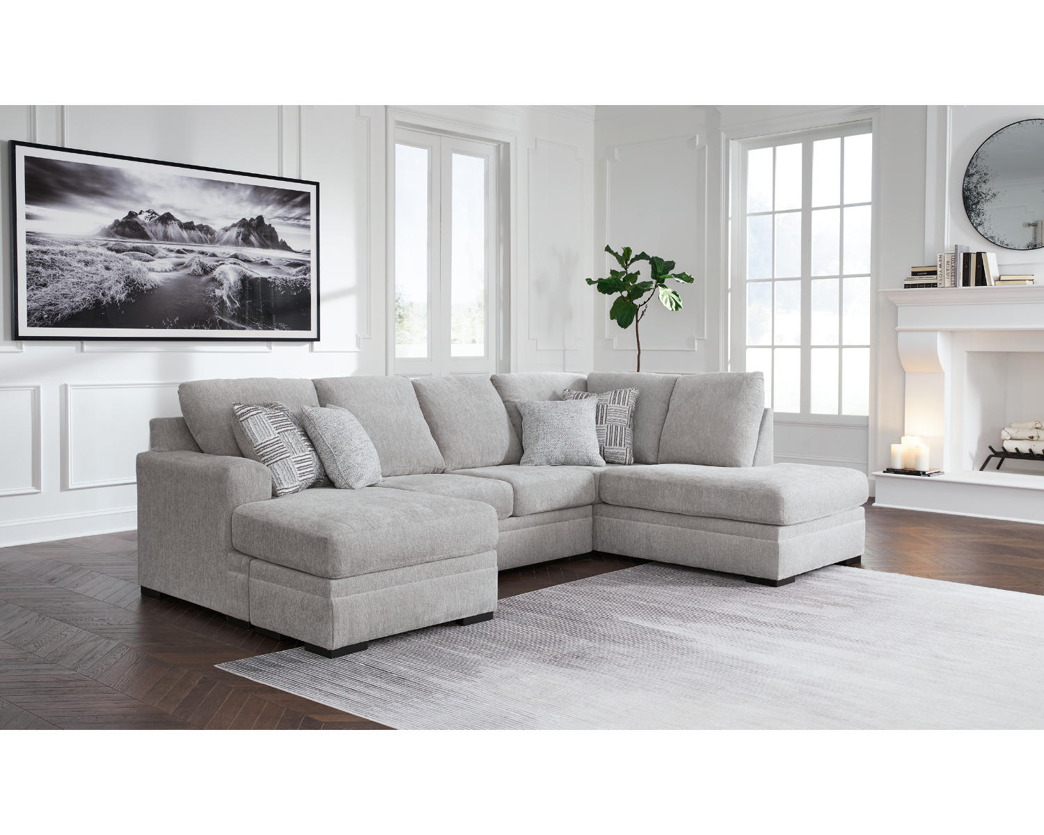 The Gabyleigh 2-Piece Sectional with Chaise in Nickel offers flexible, contemporary seating for living rooms that serve as family hubs and entertaining spaces. Designed for versatility, it pairs a welcoming sofa with a chaise to create relaxed lounging and easy conversation.