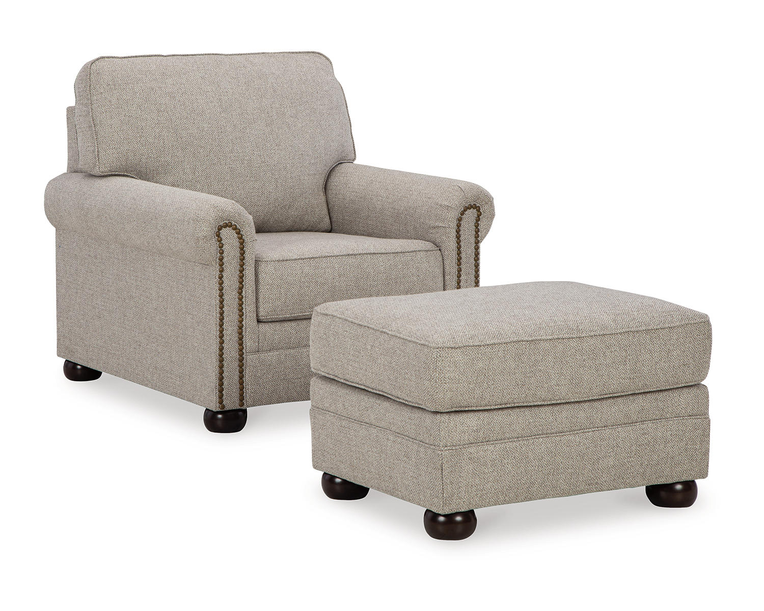 Meet Gaelon, a coordinated chair and ottoman set designed for relaxation in living spaces. The Dune finish offers a warm, versatile look that fits a range of styles. This compact duo is ideal for small spaces, reading corners, or lounges where comfort matters.