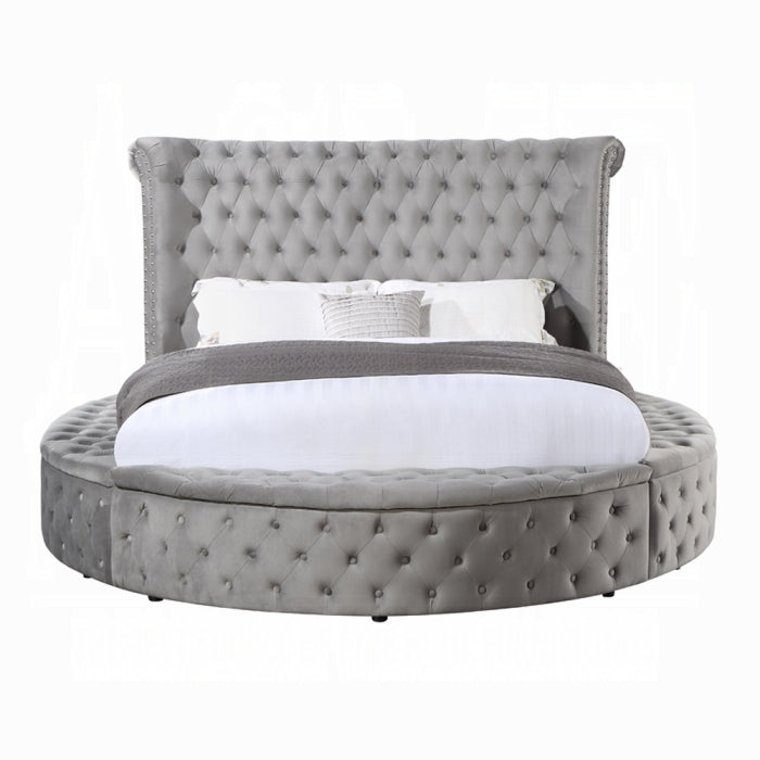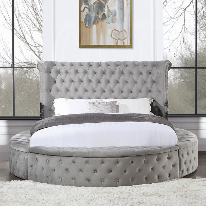 With a lavish movie-star modern design, the Gaiva bed adds drama to your bedroom decor. This queen bed features a tufted upholstered velvet headboard and footboard, bringing a luxe touch to everyday comfort. Built on a wooden frame with nailhead applications to add elegance, it combines fashion and function in one statement piece. The design includes practical storage, helping you keep essentials close at hand while maintaining a clean, uncluttered look.