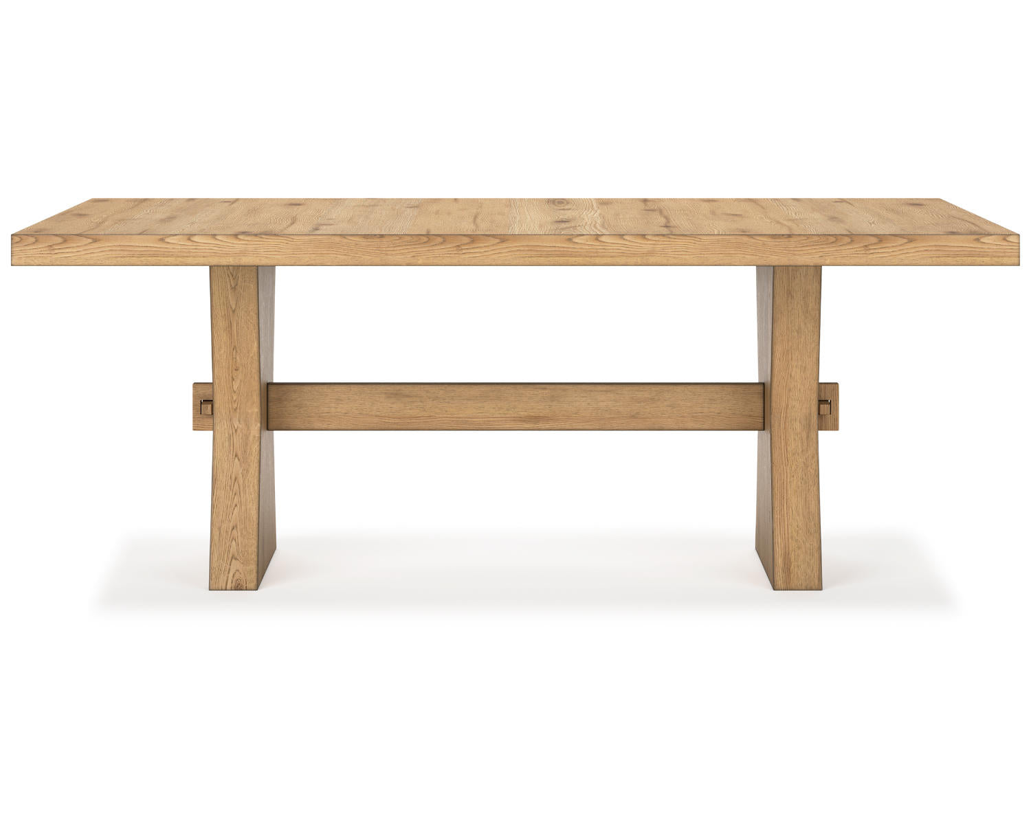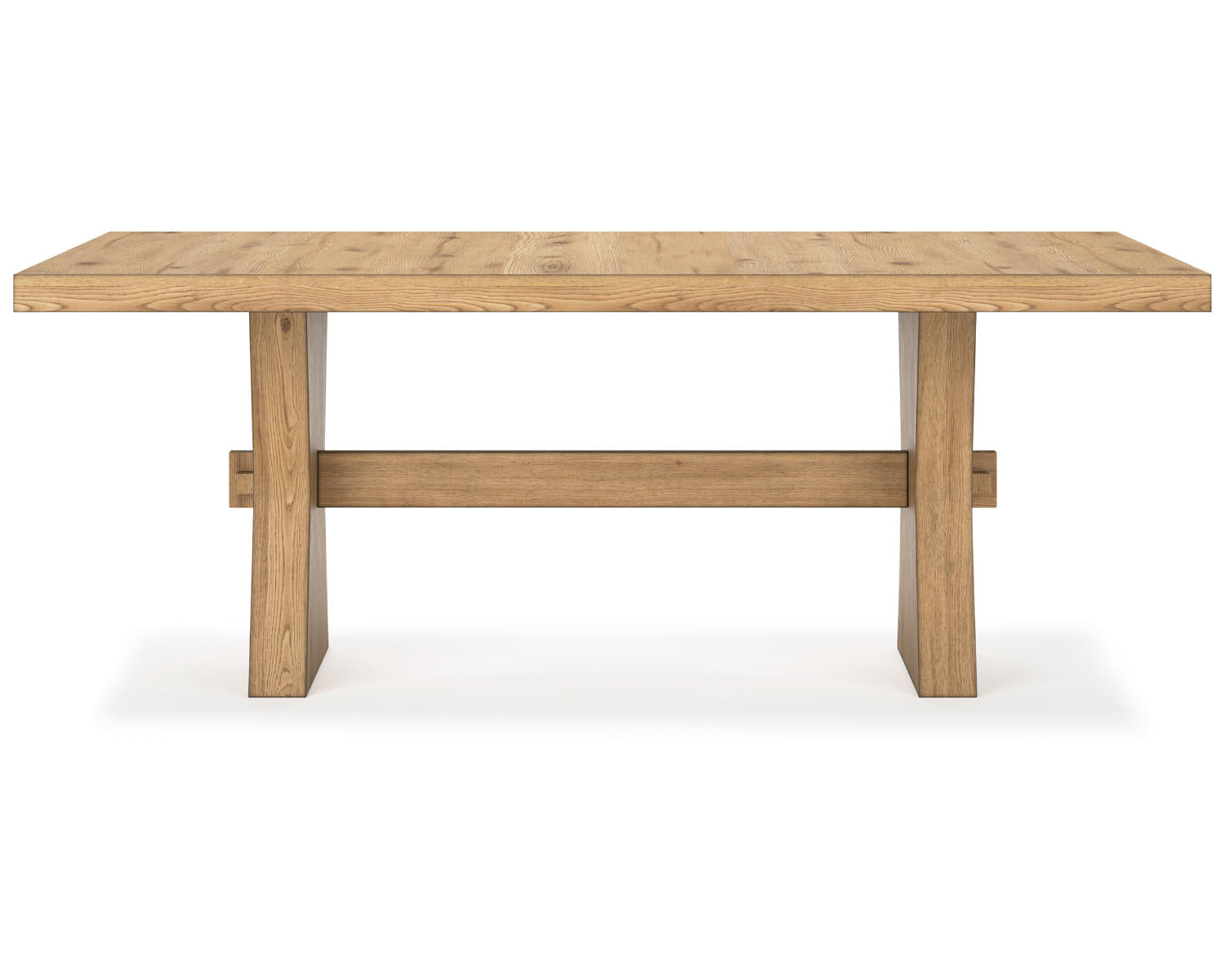 The Galliden Dining Table is a rectangular dining room centerpiece finished in light brown, designed for everyday meals and casual entertaining. It blends clean lines with a warm finish to suit modern, rustic, or transitional interiors.