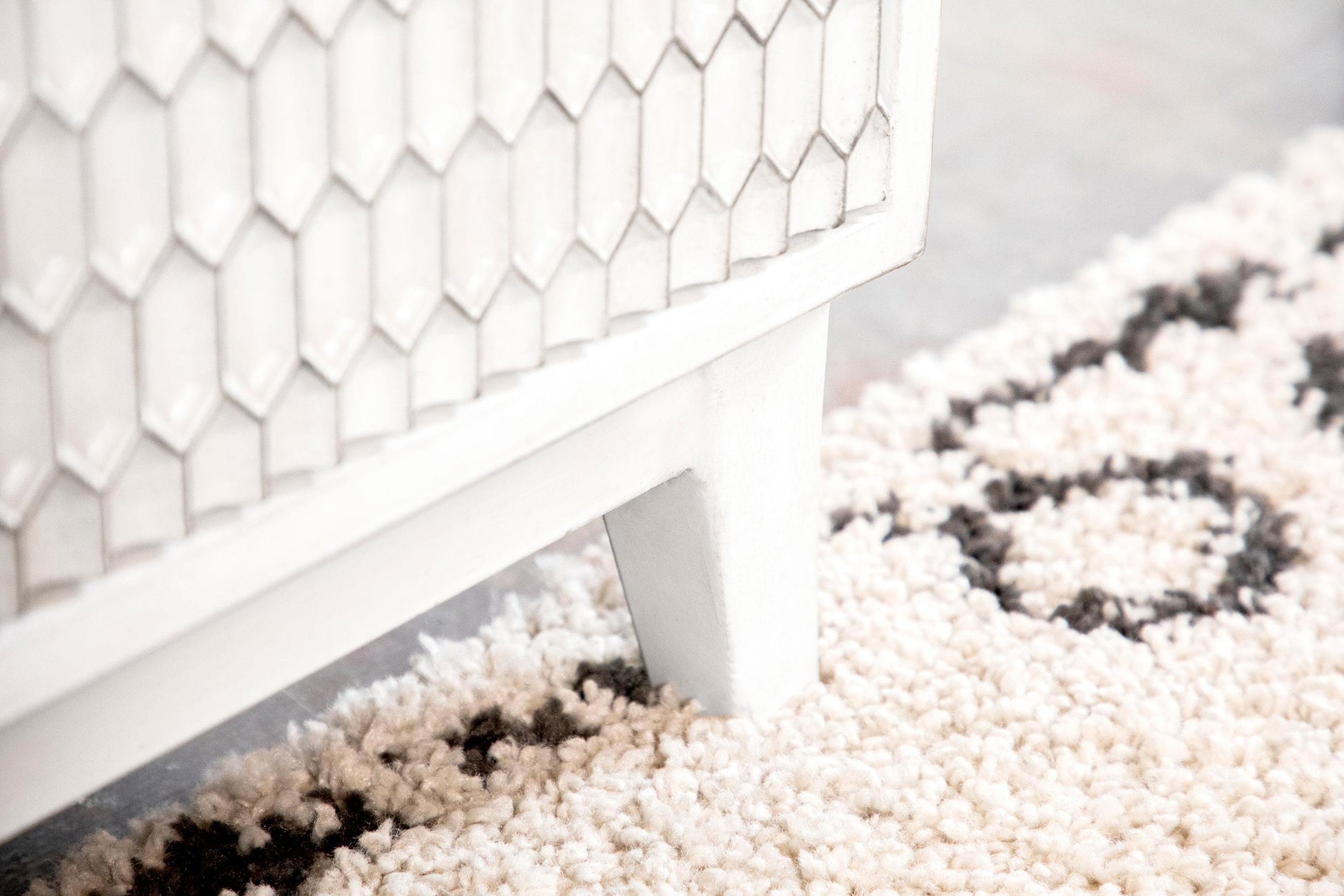 Meet Gambon, a stylish wood accent cabinet designed for modern homes. This two-door piece blends a clean white finish with a honeycomb pattern to add texture and visual interest. It's ideal for living rooms, entryways, or bedrooms that need discreet storage with a contemporary touch.