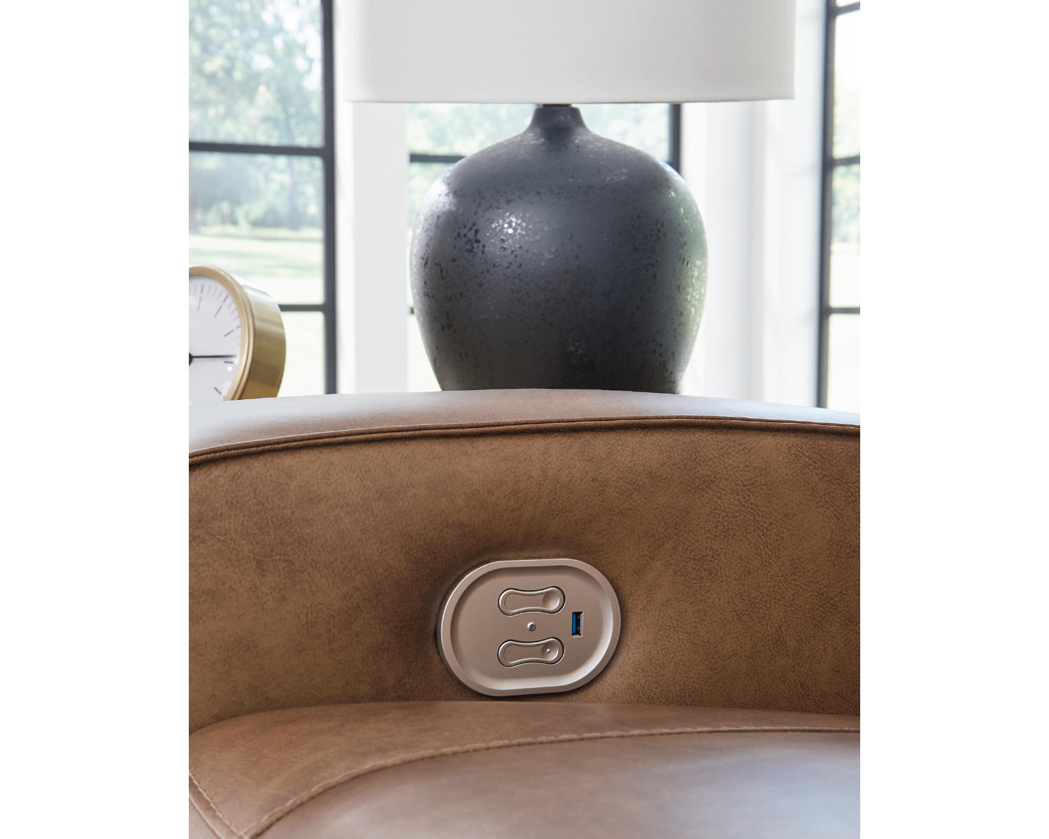 Introducing the Game Plan Power Reclining Sofa and Loveseat in Caramel — an adaptable seating duo designed for relaxed living. Perfect for family rooms and movie nights, this set offers effortless comfort with built-in power reclining at your fingertips.