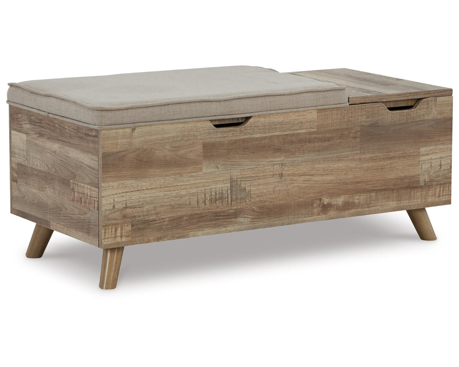 Designed for durability in busy homes, the Gerdanet Storage Bench provides reliable support for everyday seating and quick access to stored items. The combination of a sturdy frame and a practical interior helps it stand up to frequent use while keeping maintenance simple—just wipe clean as needed.