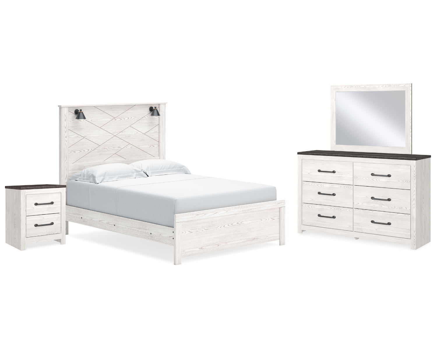 Experience a cohesive, modern bedroom with the Gerridan Queen Panel Bed, Dresser, Mirror, and Nightstand in a White/Gray finish. This all-in-one set is designed for anyone who wants a clean, coordinated look without the extra shopping. The collection includes a queen panel bed, a dresser, a framed mirror, and a matching nightstand, delivering a complete sleep space that stays organized and stylish.