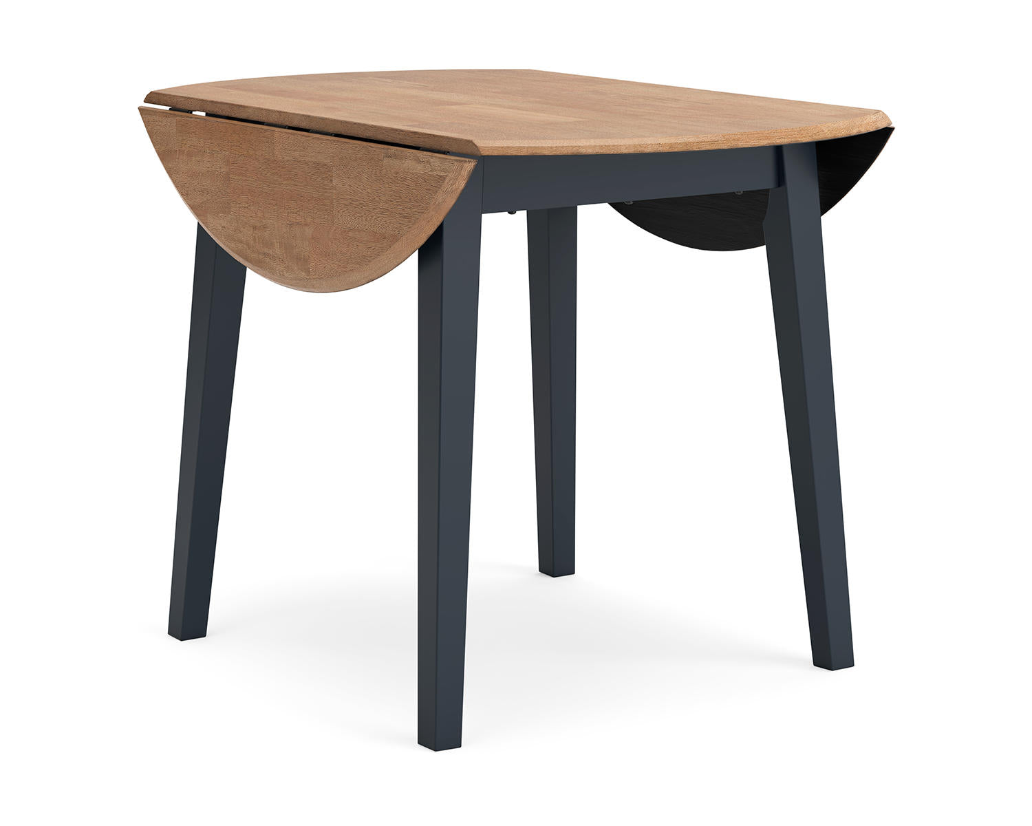 Introducing the Gesthaven Round DRM Drop Leaf Table in Natural/Blue—the versatile dining solution for compact spaces. Perfect for apartments, breakfast nooks, and casual dining, this round table adapts with a drop-leaf design to extend seating when needed. The natural finish paired with blue accents offers a warm, contemporary look that fits a variety of decor styles.