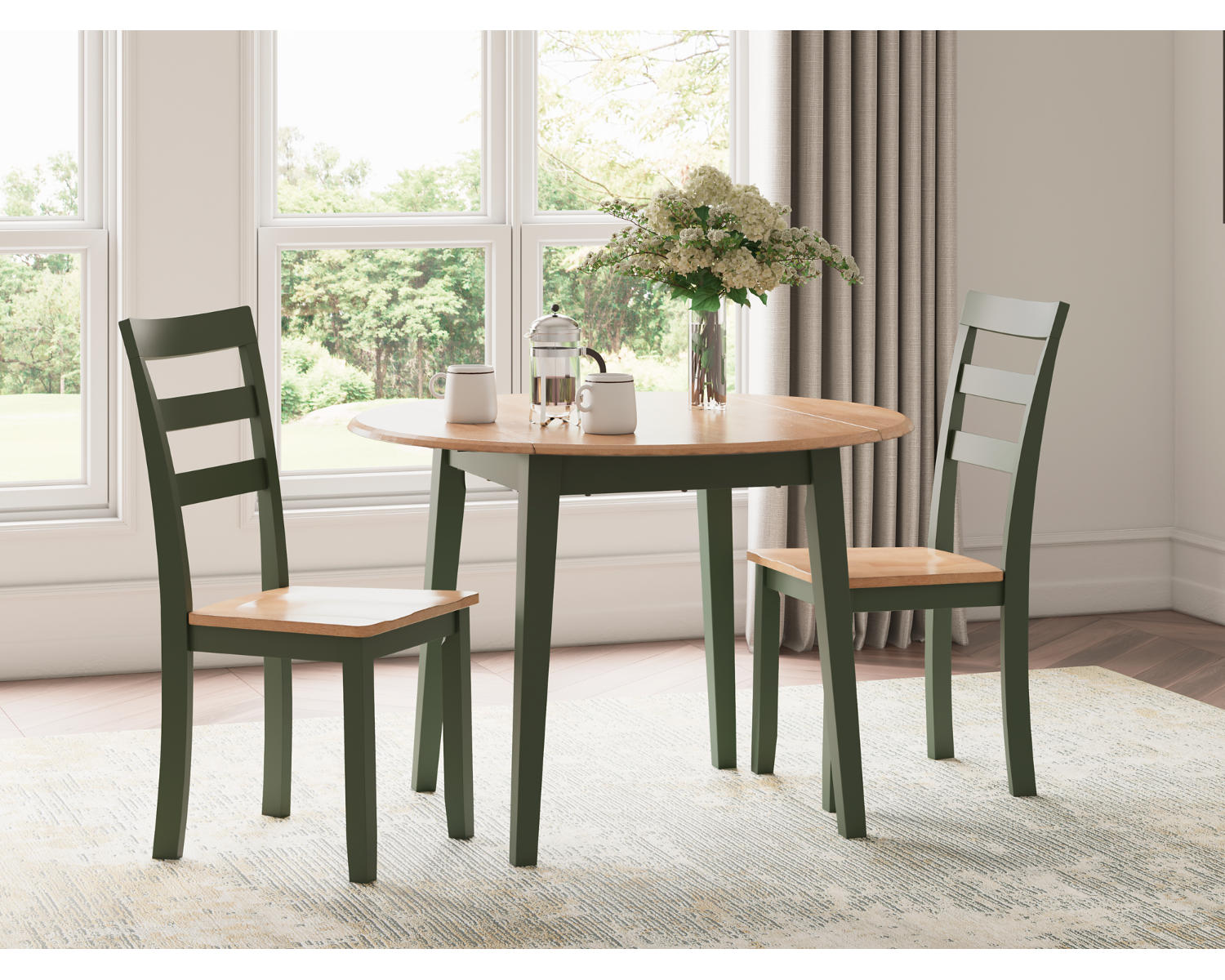 Discover the Gesthaven Dining Table and 2 Chairs, a compact, contemporary dining set designed for small spaces and everyday meals. With a natural finish and green accents, it brings a warm, inviting look to kitchens and dining corners. Crafted to fit modern homes without sacrificing comfort, this two-chair set offers simple style and reliable function.