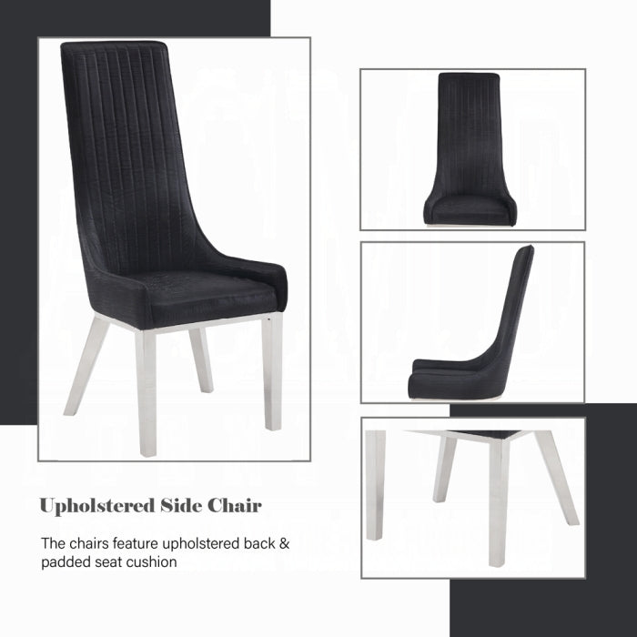 Elevate your dining space with the Gianna Side Chair Set. This modern seating solution blends a sleek stainless steel frame with a plush black velvet upholstered seat, crafted for both style and comfort. Ideal for contemporary homes and hospitality settings, it offers a refined look with dependable everyday use.