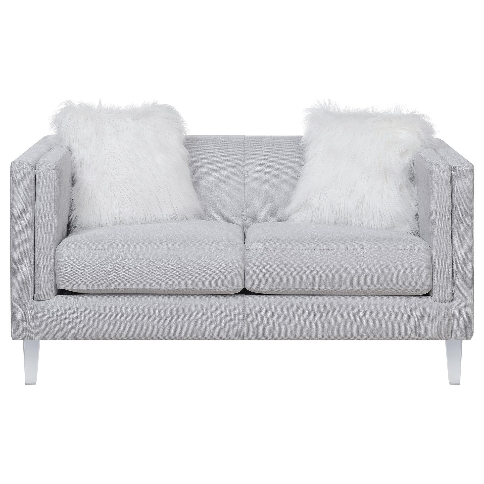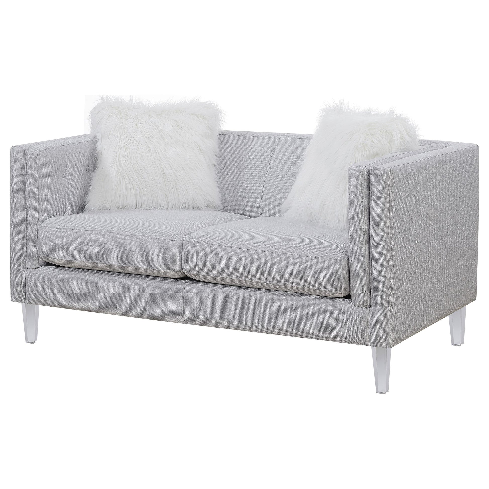 Glacier Upholstered Tuxedo Arm Tufted Loveseat Light Grey