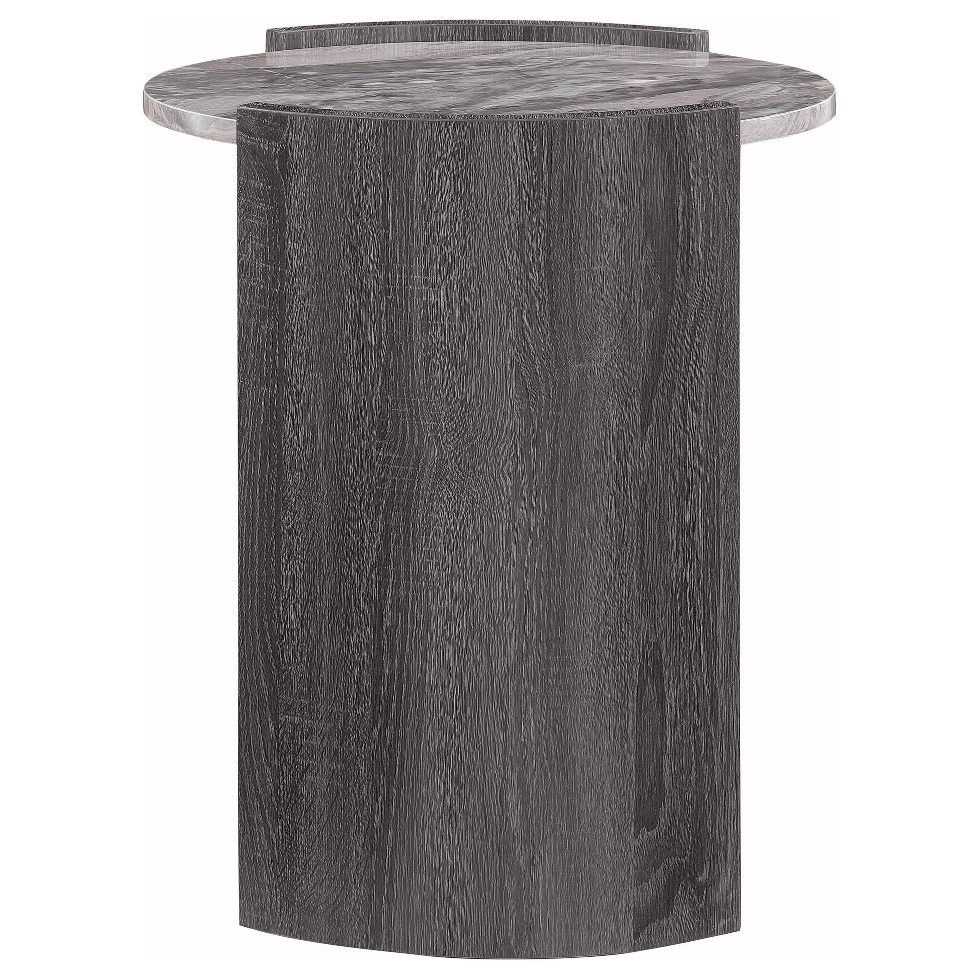 Gladstone Round Faux Marble Top End Table Distressed Grey