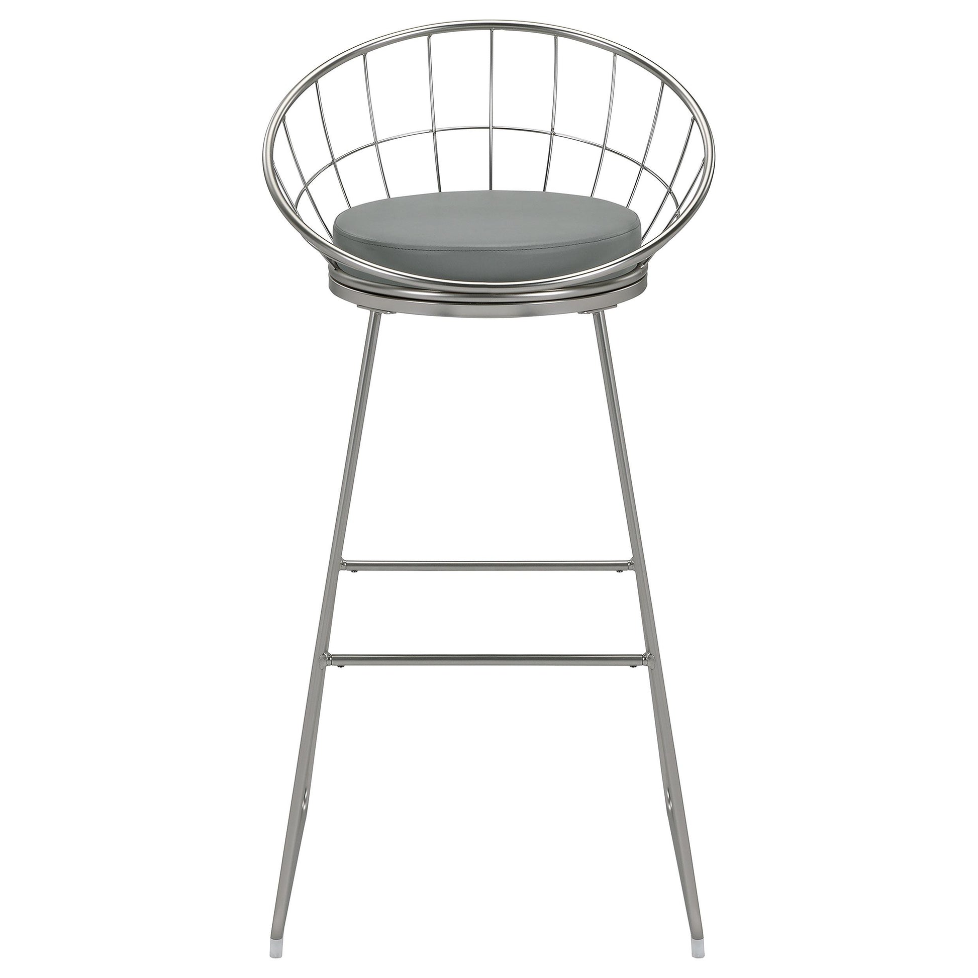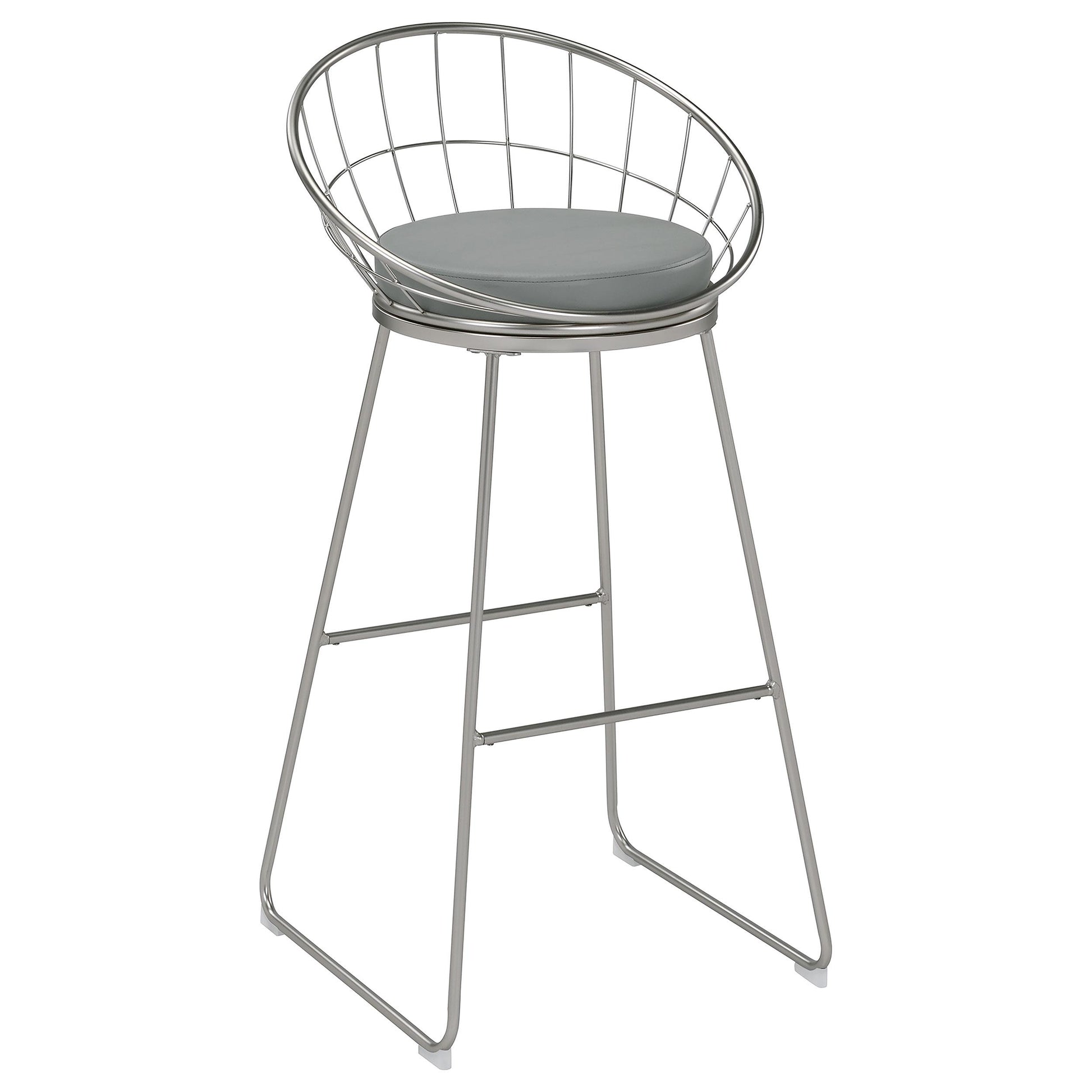 Introducing the Glenbrook Faux Leather Bar Stool in Satin Nickel. This modern seating solution is designed for home bars, kitchen islands, and casual dining spaces. Sold as a set of two, it combines clean lines with easy-care materials to fit a range of interiors.