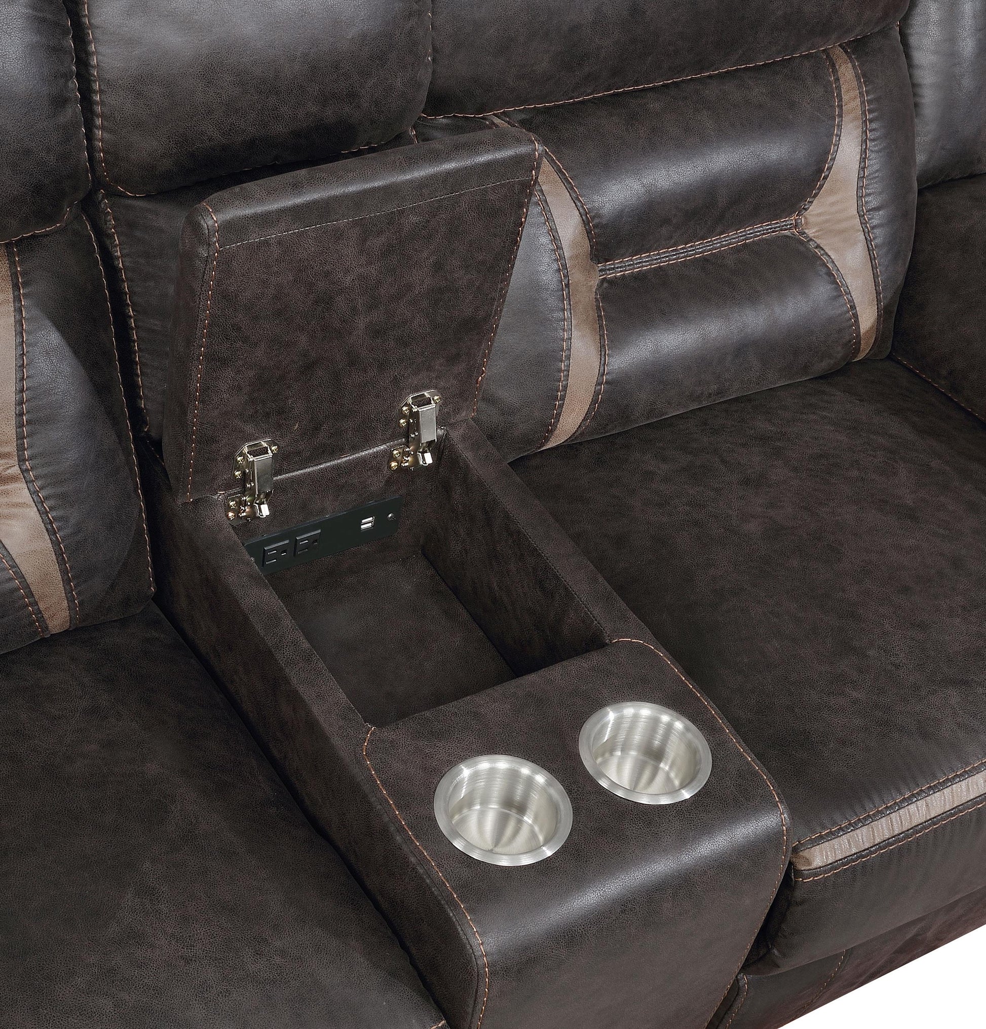 - Two-piece reclining set in inviting brown upholstery for flexible seating options