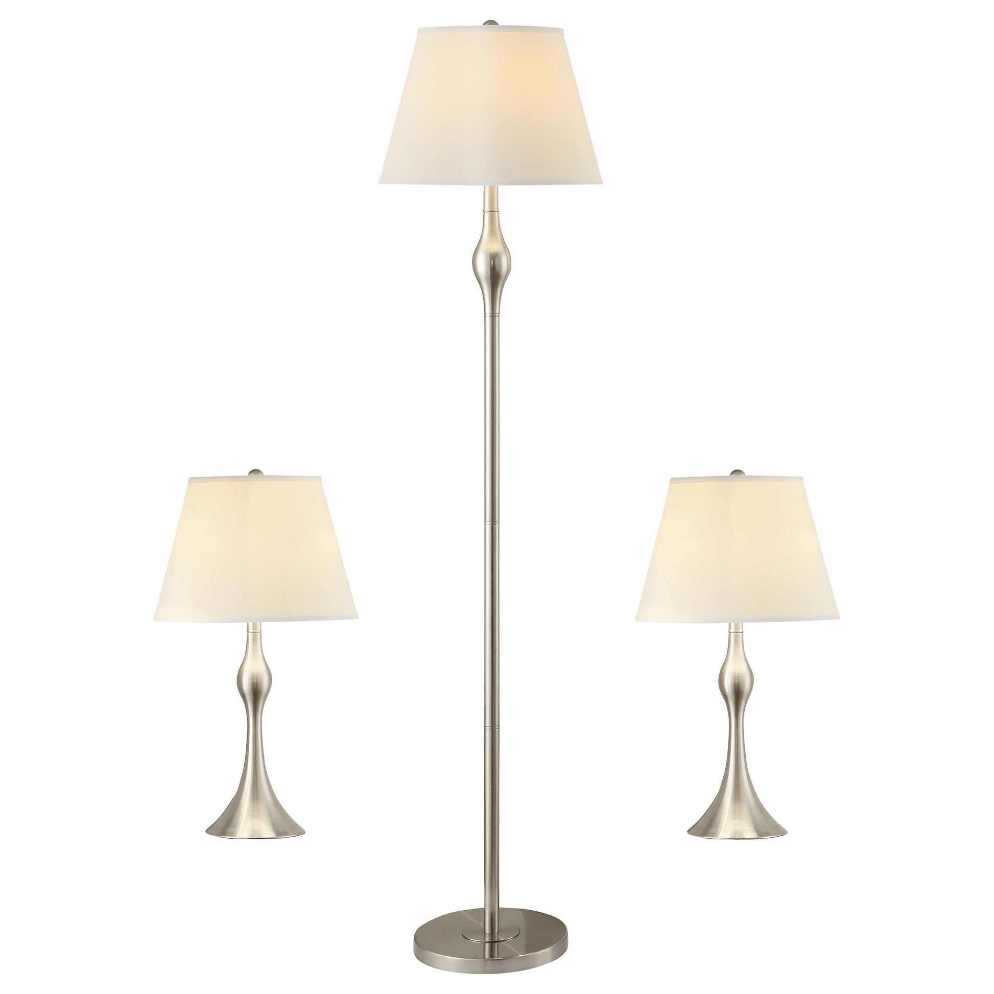 - Includes one floor lamp and two table lamps for a coordinated lighting solution
