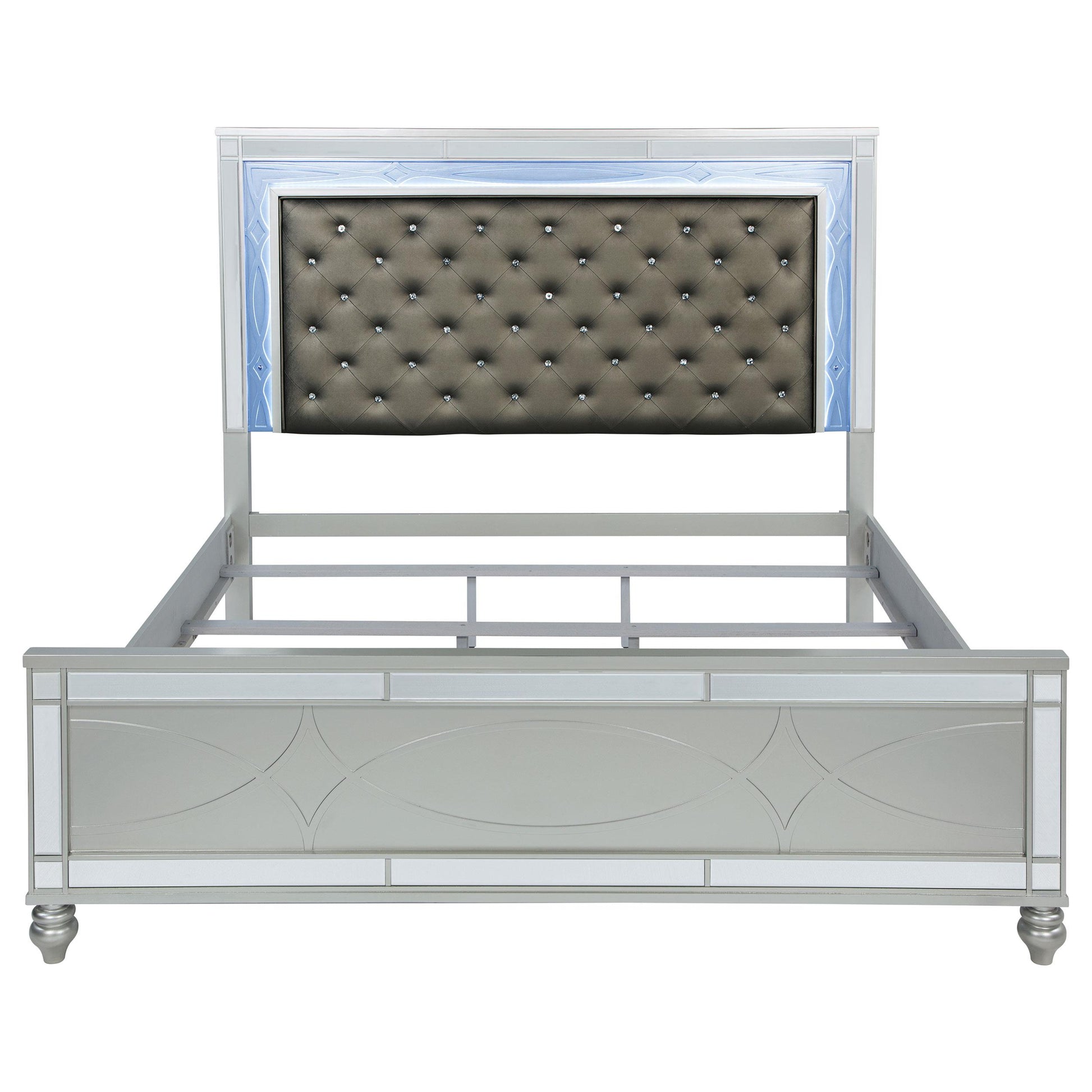 Gunnison Wood Eastern King LED Panel Bed Silver Metallic
