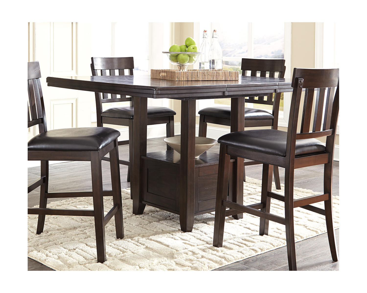 Introducing the Haddigan Counter Height Dining Extension Table—a versatile centerpiece for kitchens, dining nooks, and casual dining spaces. This rectangular table in a dark brown finish blends everyday practicality with a refined silhouette, making it an easy addition to a range of decors. With its extension capability, it adapts from everyday meals to larger gatherings without sacrificing style.