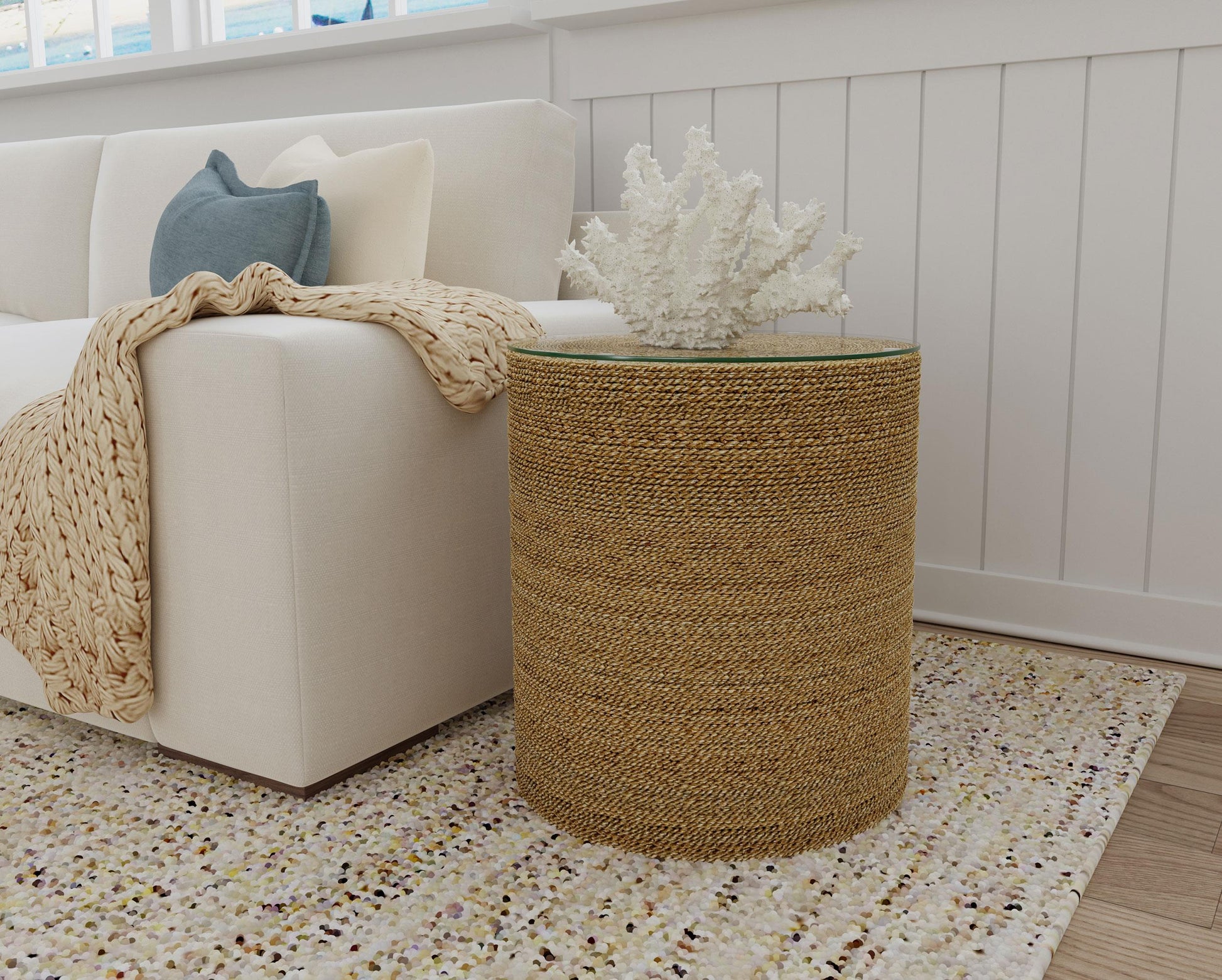 Halden Round Woven Seagrass Accent Side Table – Light Brown