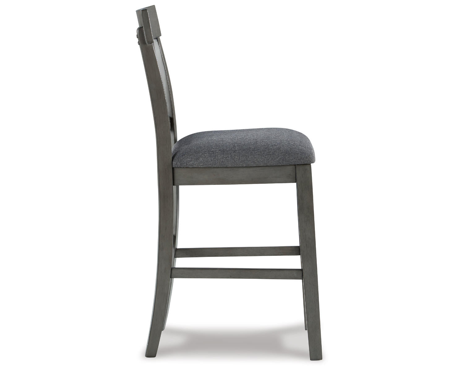 The two-tone gray upholstery complements a wide range of decor styles, from sleek urban to cozy casual spaces. The upholstered seat and back provide soft, supportive comfort for extended seating during meals or conversations.
