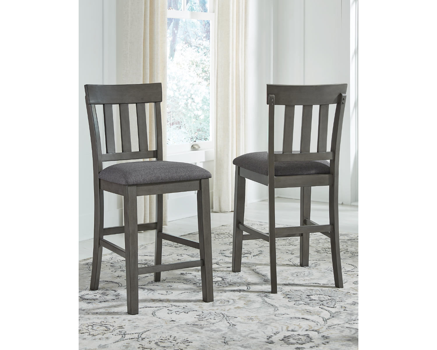 Meet Hallanden, a pair of counter-height upholstered bar stools crafted for modern kitchens and home bars. This 2/CN set features a two-tone gray palette that brings contemporary sophistication to any counter or high-top table. Comfortable seating and versatile design make it a practical addition for everyday dining and entertaining.