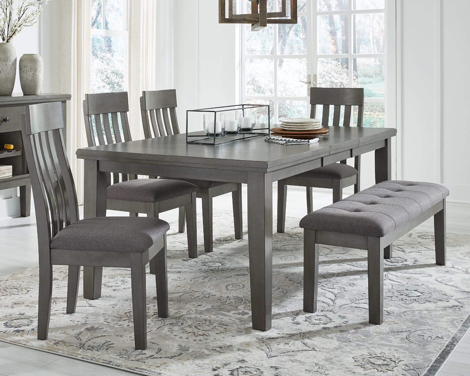 Hallanden Dining Table, 4 Chairs, and Bench — Gray