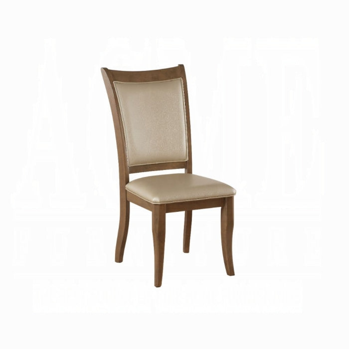The Harald Side Chair is a versatile seating solution designed for dining rooms, kitchens, or living spaces. This two-chair set combines a warm beige synthetic leather seat with a gray oak finish for a timeless look that fits a variety of interiors.