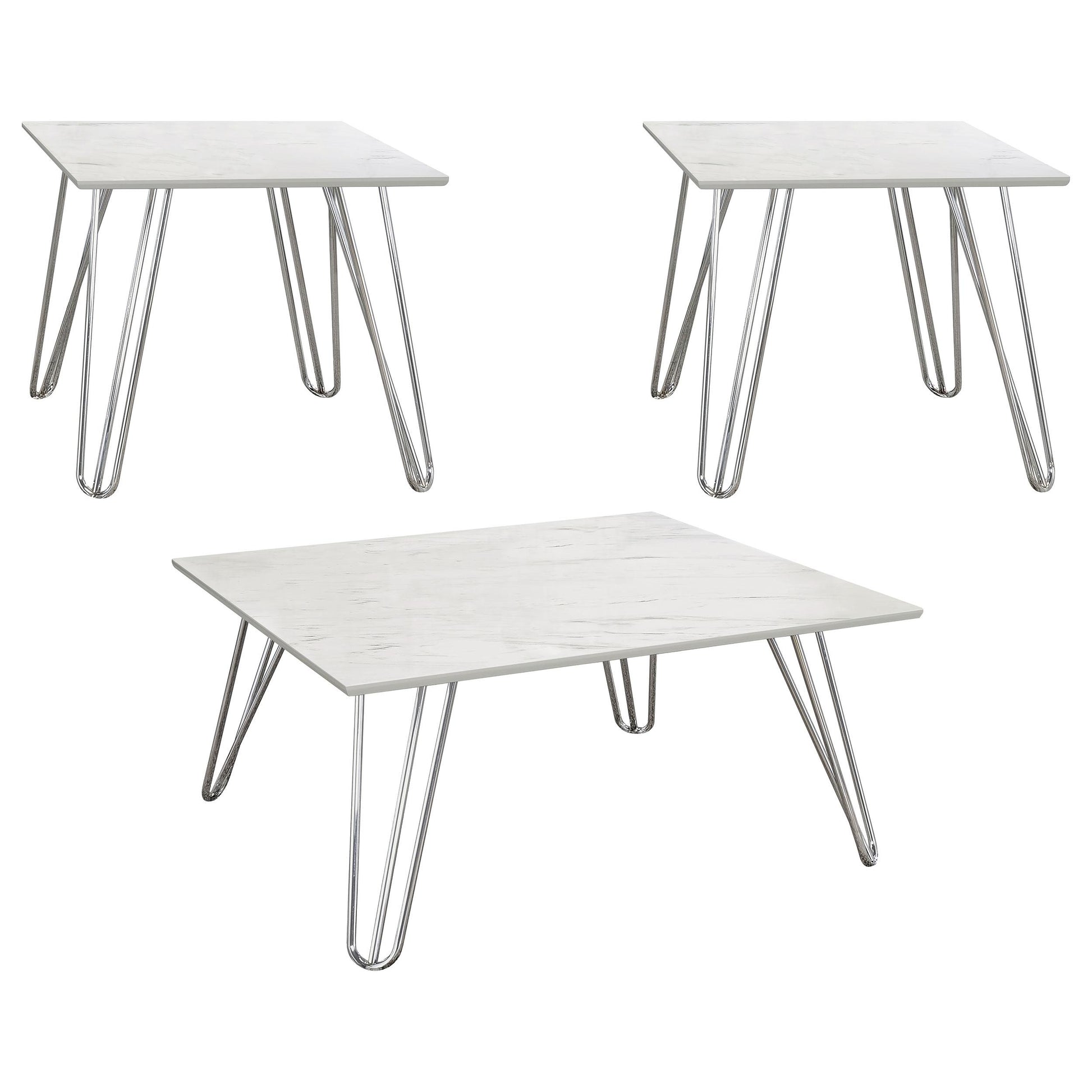 Harley 3-piece Occasional Coffee Table Set Faux White Marble and Chrome