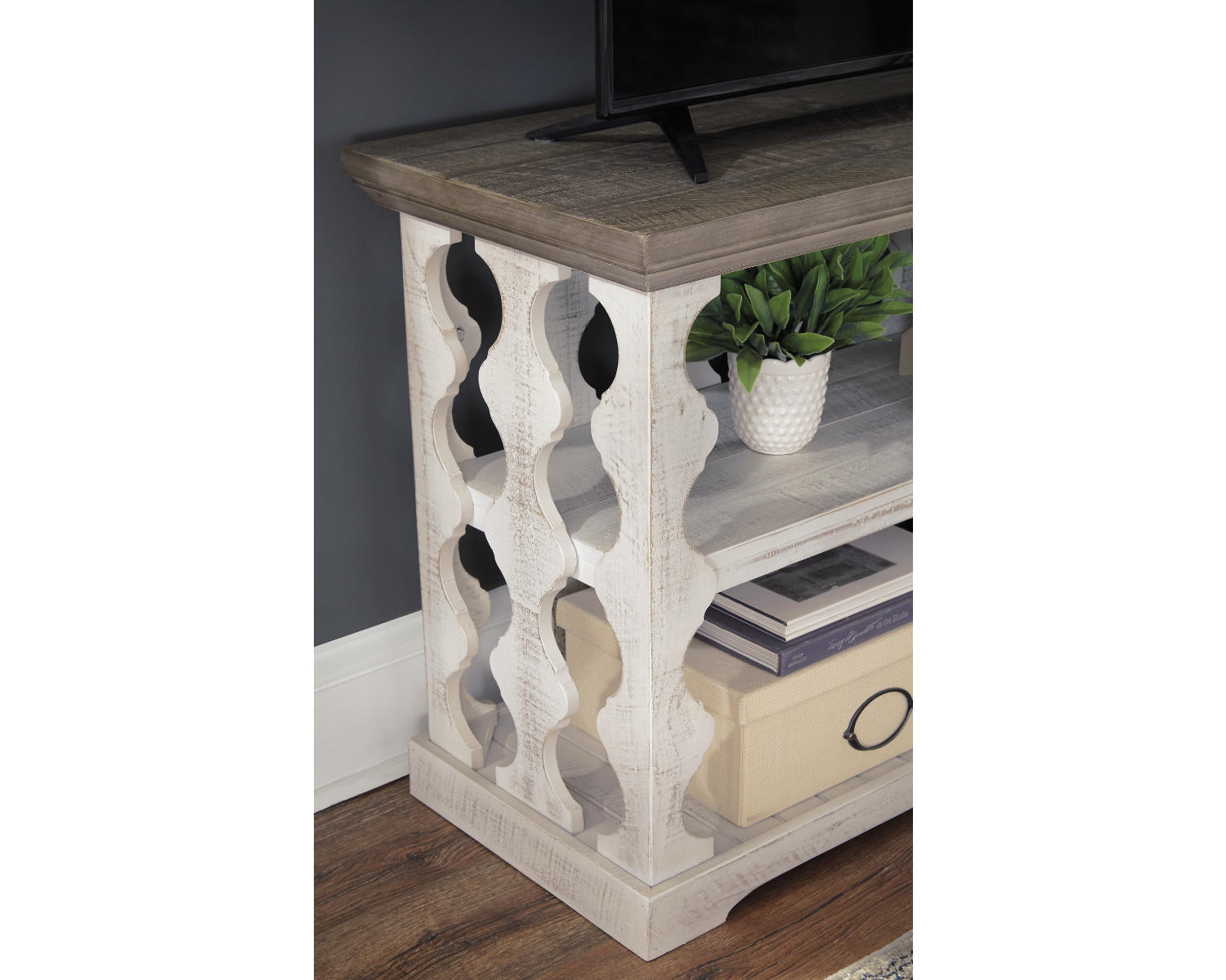 Meet the Havalance Sofa/Console Table in Gray/White—a versatile two‑in‑one piece that adds surface space and clean, contemporary style to your living room, entryway, or hallway. Designed for modern homes and everyday use, it blends practicality with a sleek two-tone finish.