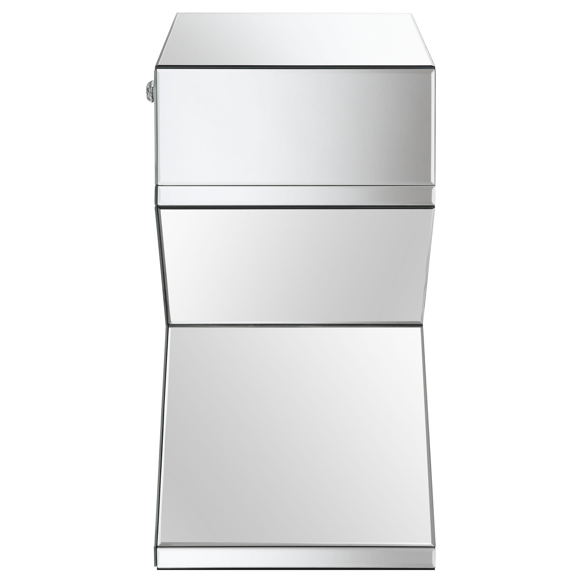 Elevate your space with the Hazel 1-drawer Mirrored Accent Side Table in Silver. This compact, stylish piece is designed for living rooms, bedrooms, or entryways, pairing a reflective surface with practical storage. The silver-toned mirrored panels brighten rooms and add a touch of modern glamour.