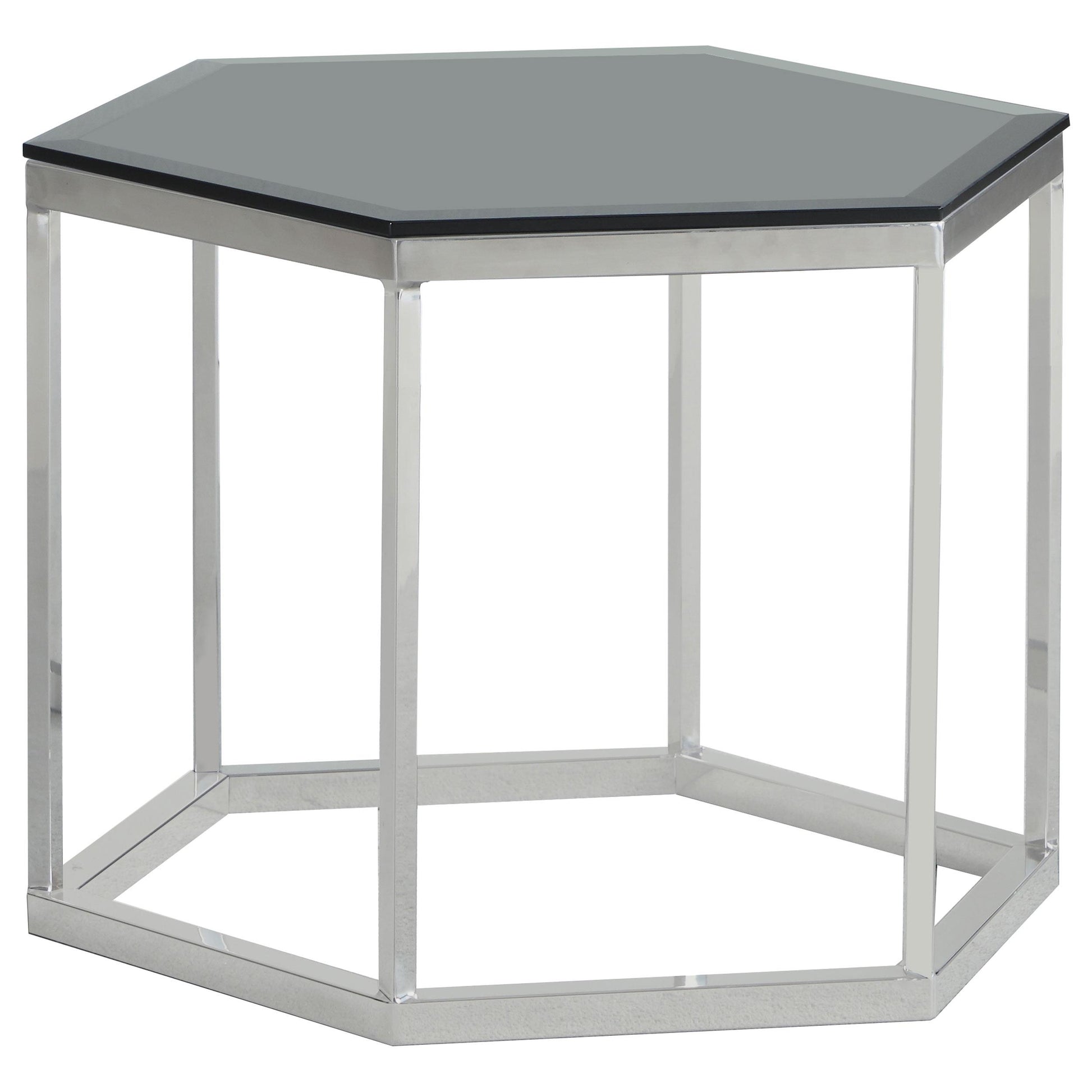 Hexagonal Smoked Glass Top Accent Side Table Chrome